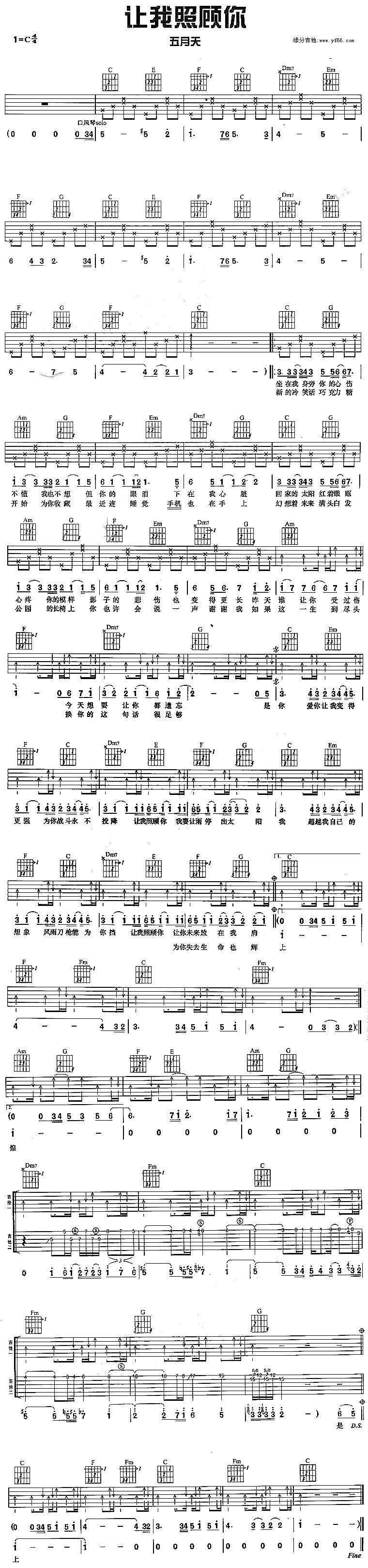 曲谱介绍: 五月天《让我照顾你》吉他谱,总共1张高清图片谱,选用C调,节拍4/4拍,不使用变调夹,弹唱难度初级。