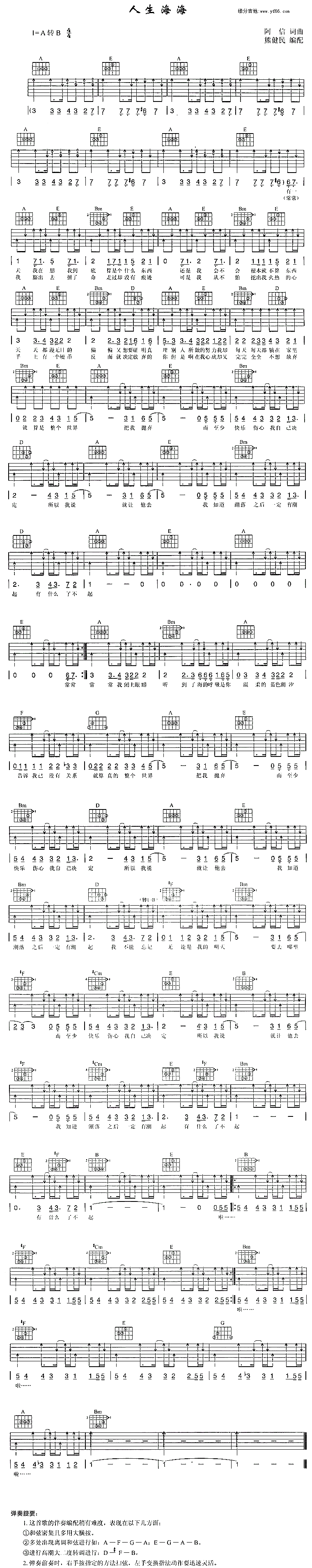 当前位置:琴谱网>吉他弹唱>人生海海