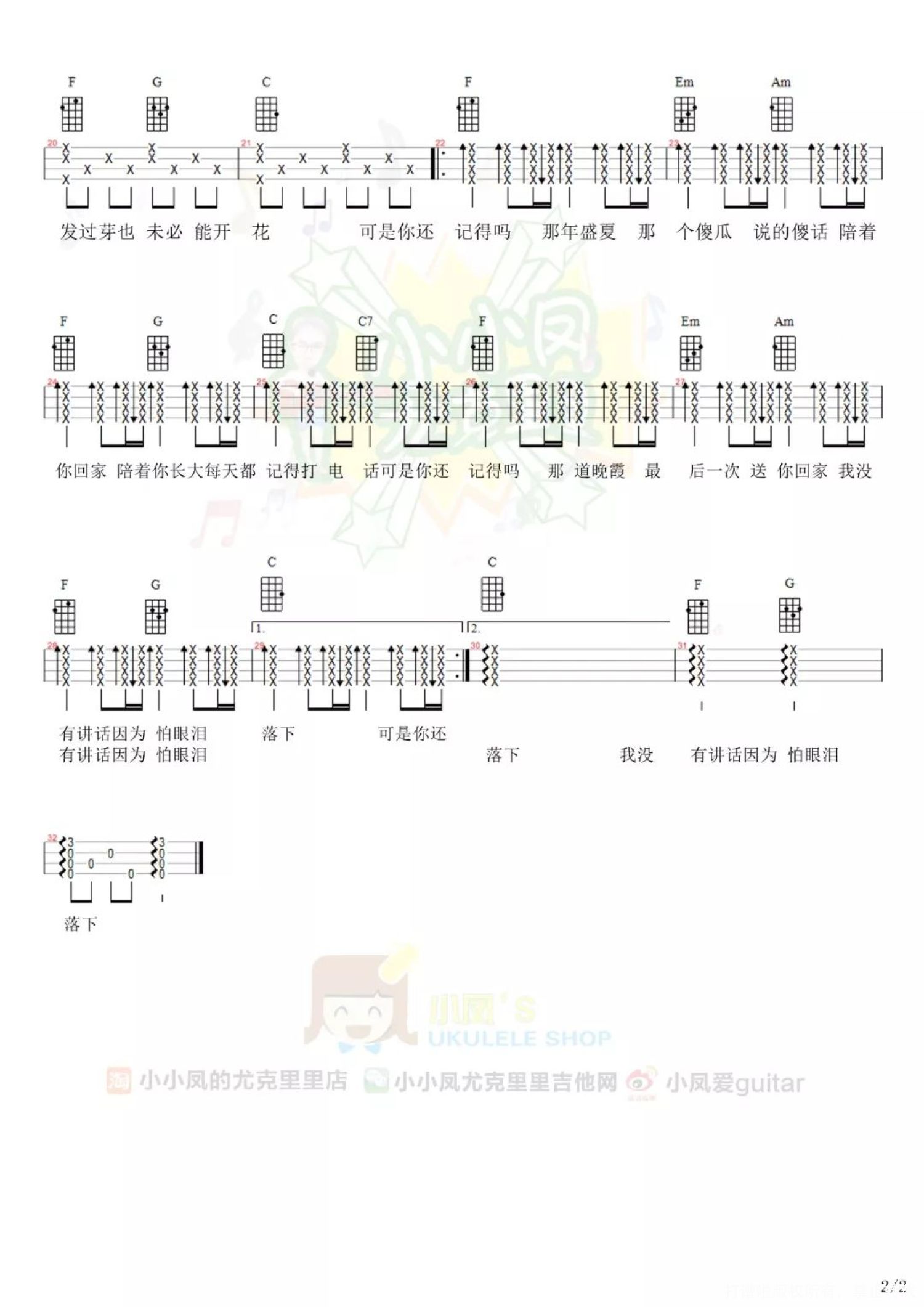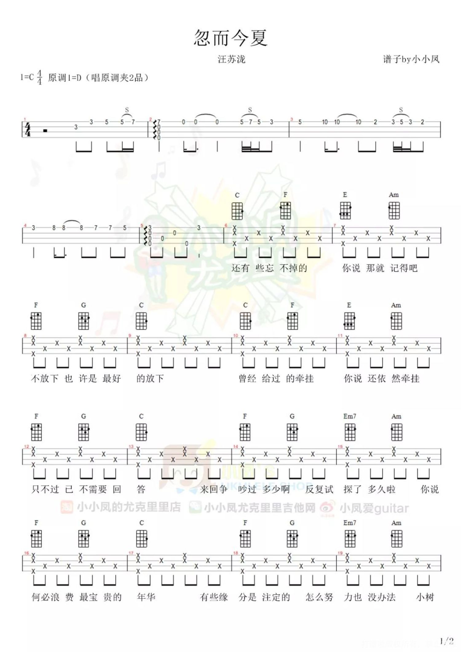 忽而今夏尤克里里谱 - 汪苏泷