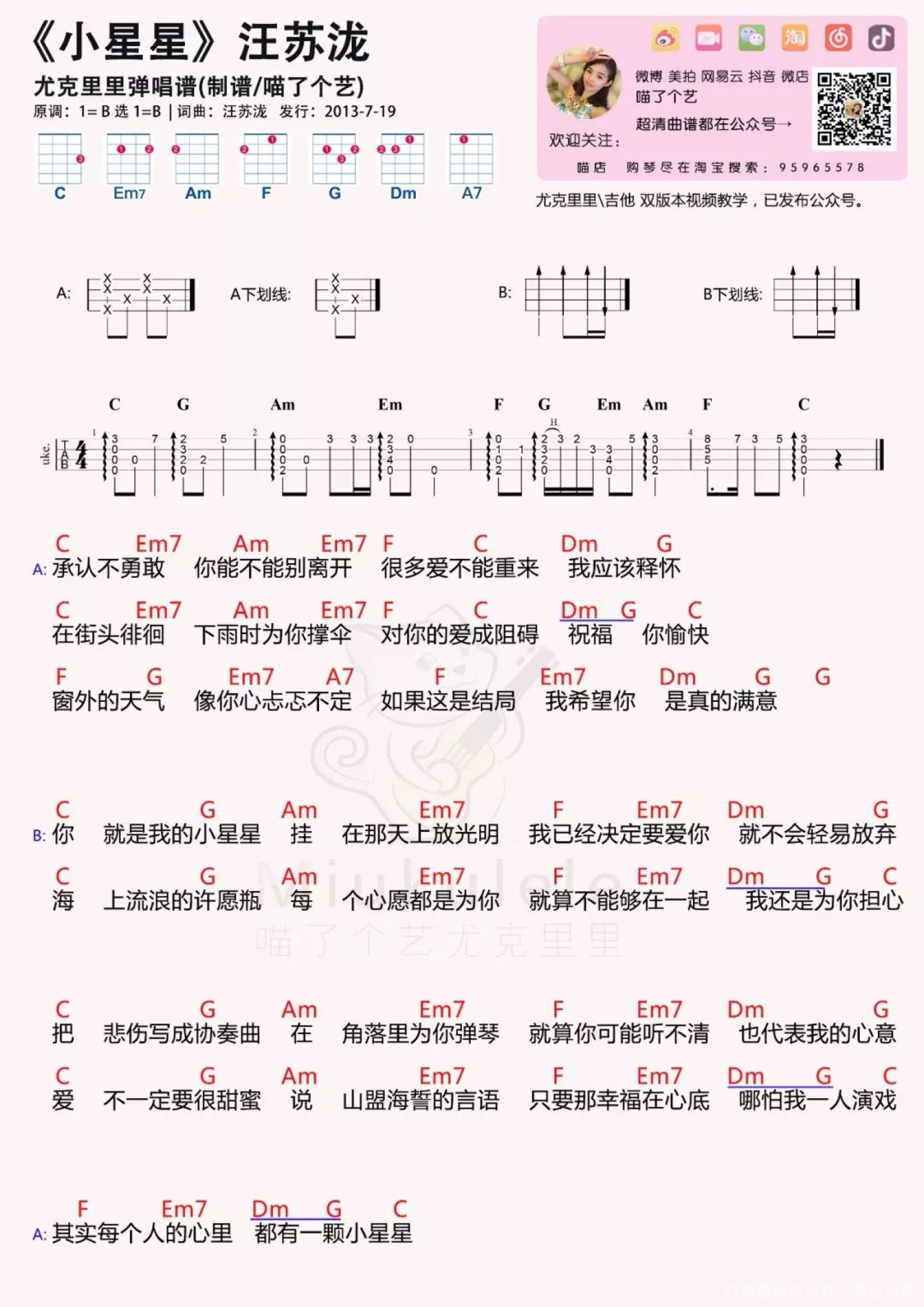 小星星尤克里里谱 - 汪苏泷