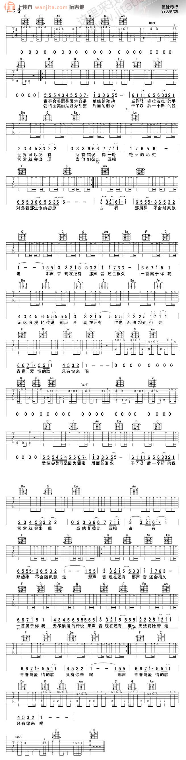 当前位置:琴谱网>吉他弹唱>青春与爱情