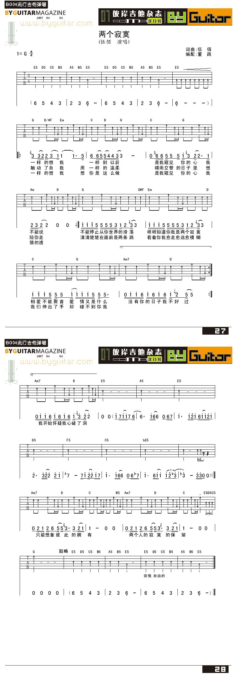 当前位置:琴谱网>吉他弹唱>两个寂寞