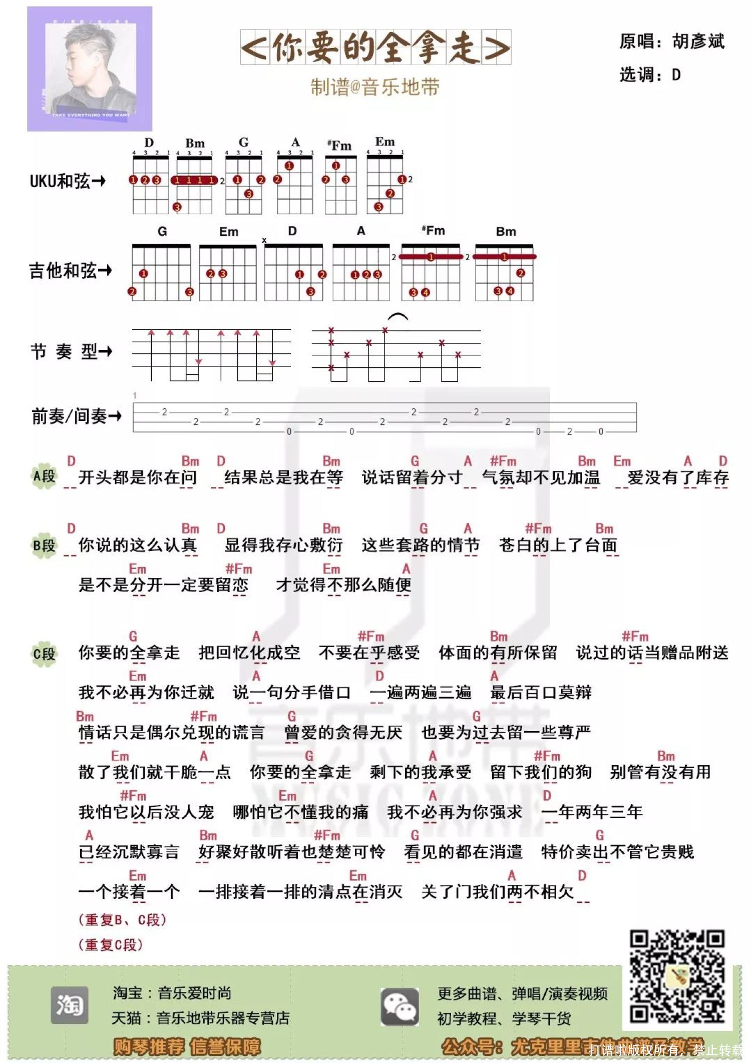 你要的全拿走尤克里里谱 - 胡彦斌