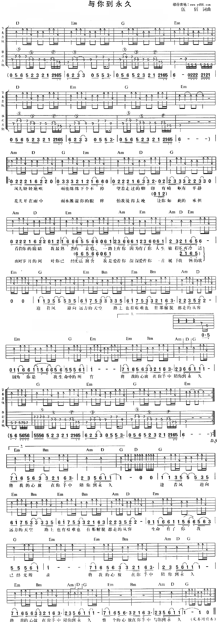 曲谱介绍: 伍佰《与你到永久》吉他谱,总共1张高清图片谱,不使用变调夹,弹唱难度初级。
