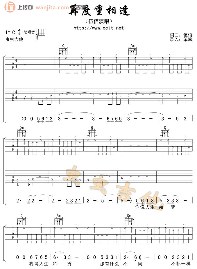 再度重相逢吉他谱 - 伍佰 - C调吉他弹唱谱