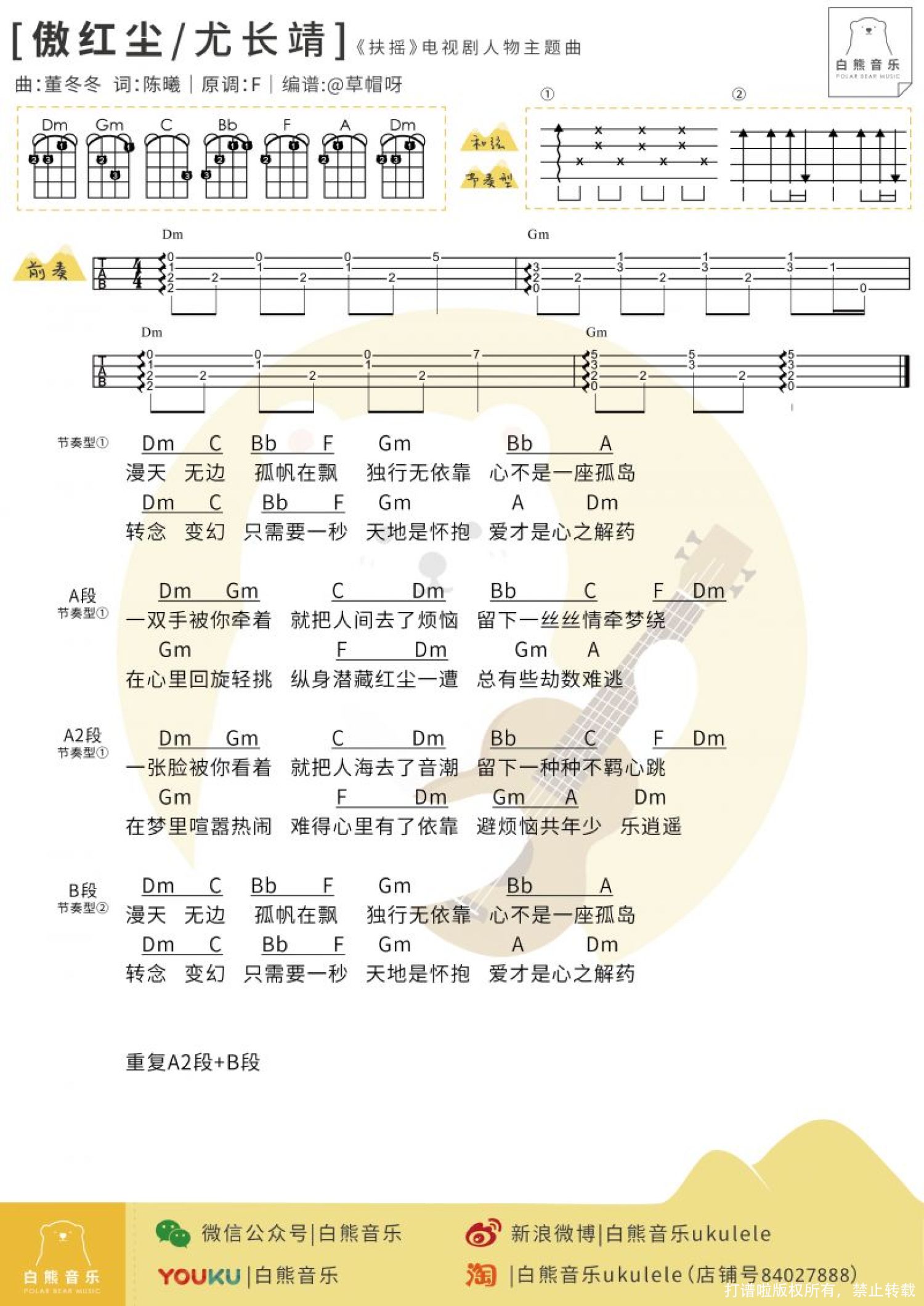 曲谱介绍: 《傲红尘》尤克里里弹唱谱