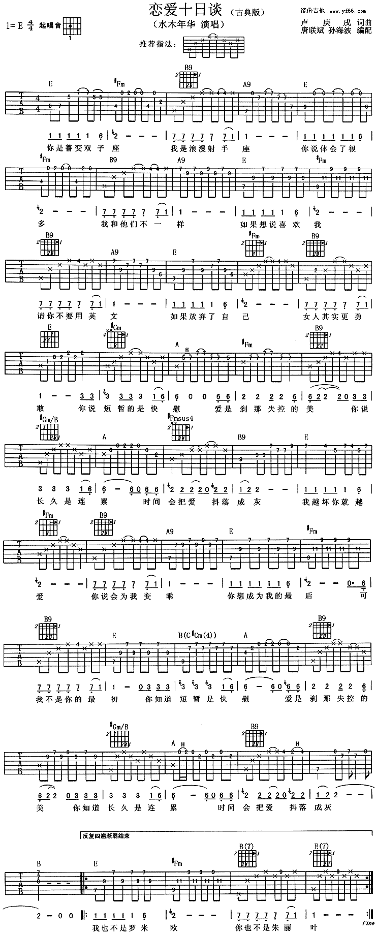 恋爱十日谈吉他谱 - 水木年华 - E调吉他弹唱谱