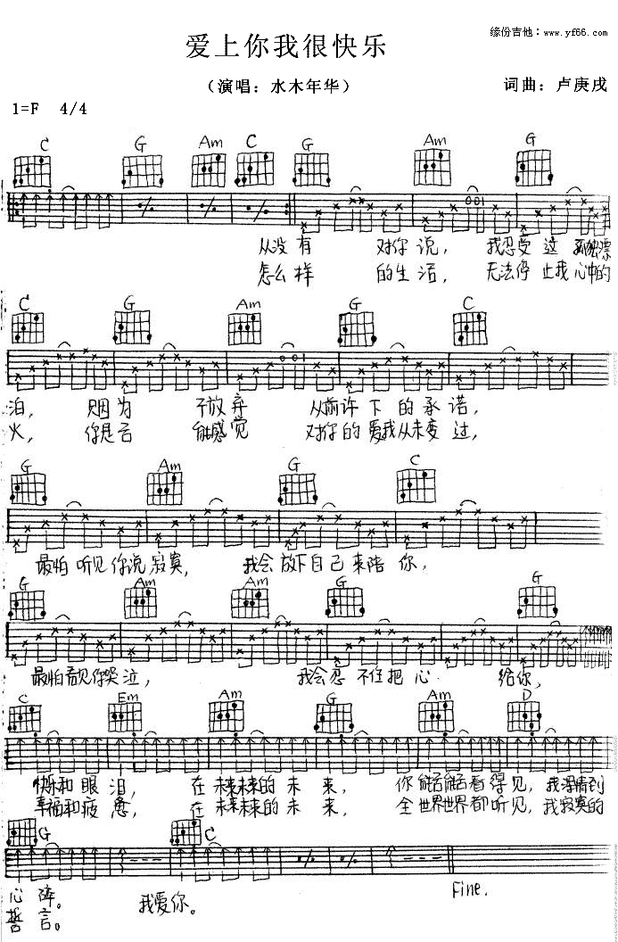 爱上你我很快乐吉他谱 - 水木年华 - F调吉他弹唱谱