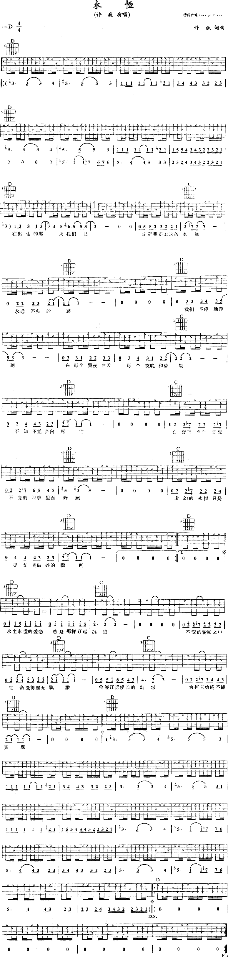 永恒吉他谱 - 许巍 - D调吉他弹唱谱