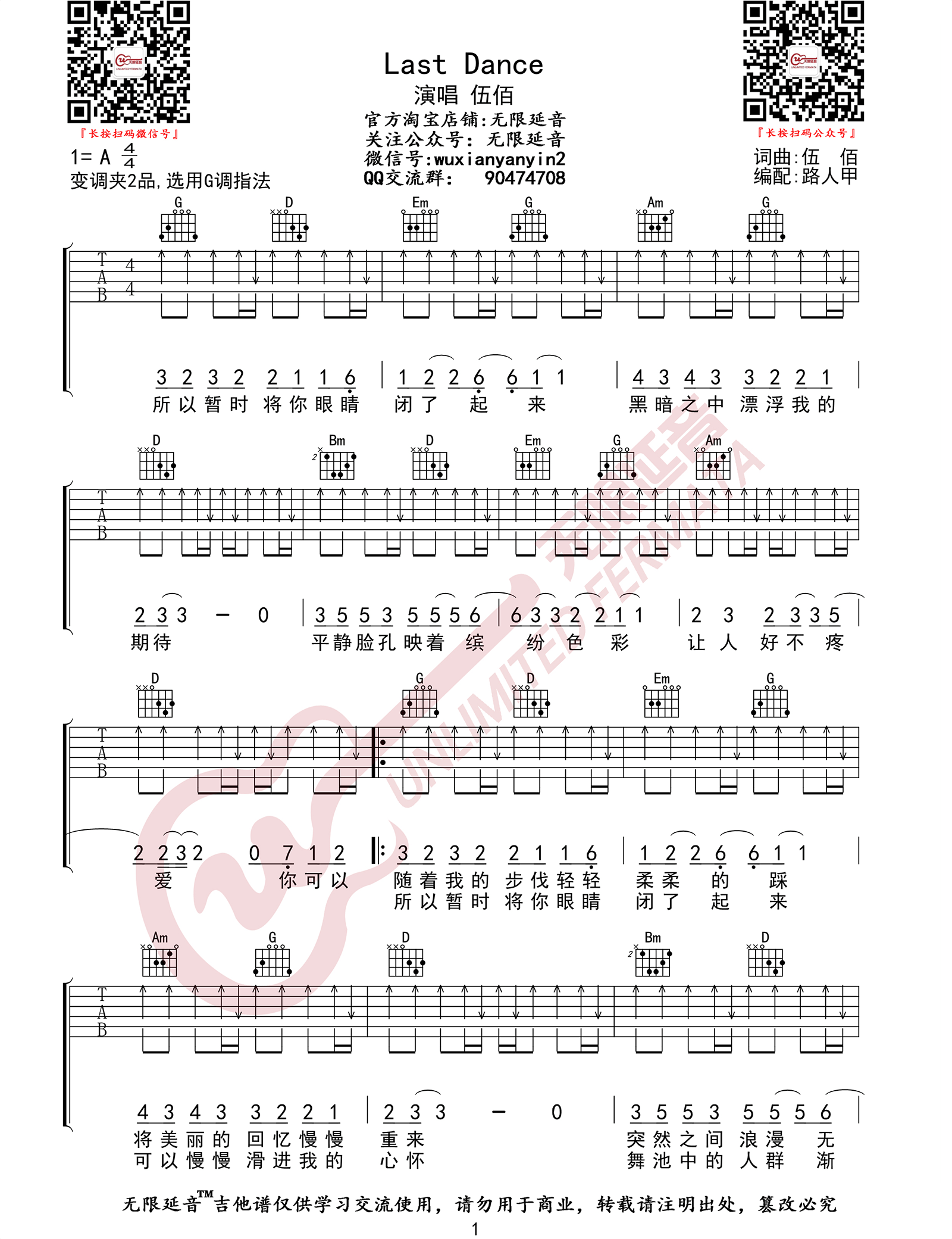 当前位置:琴谱网>吉他弹唱>Last Dance