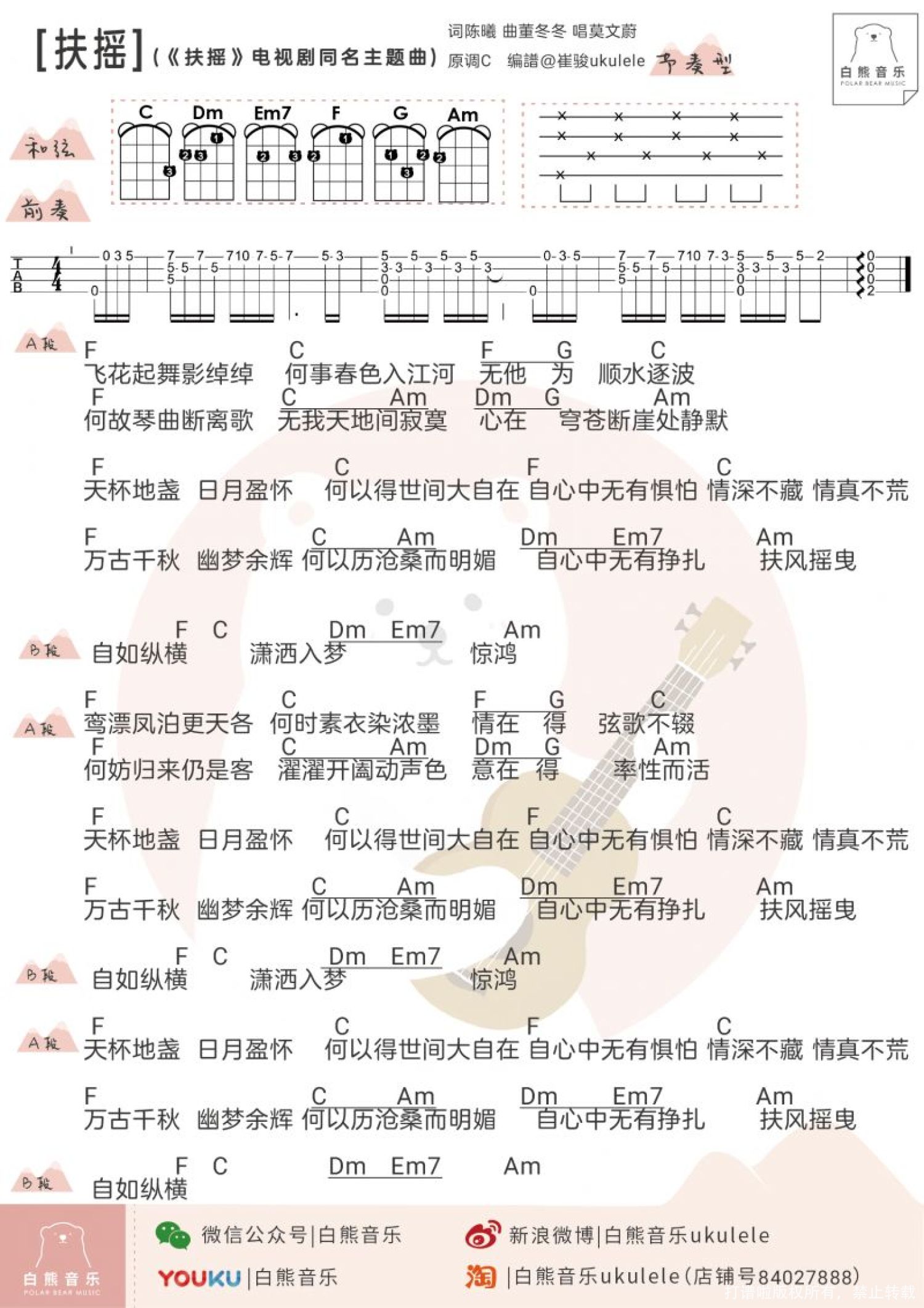 曲谱介绍: 《扶摇》尤克里里弹唱谱