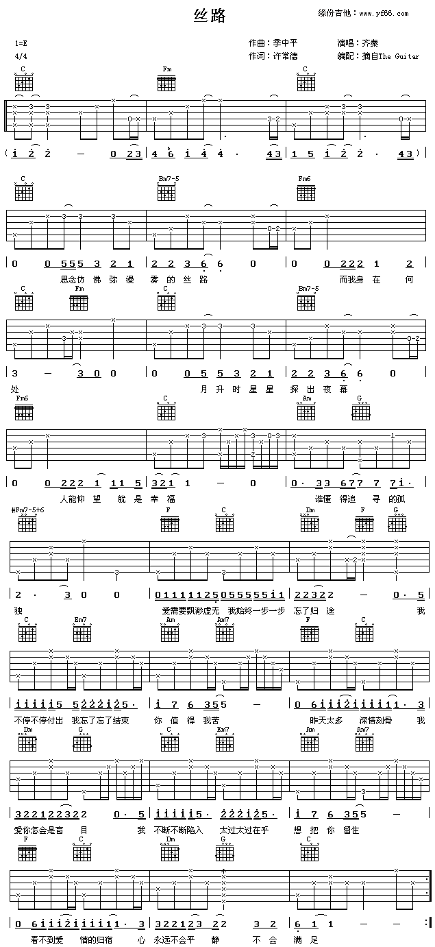 丝路吉他谱 - 齐秦 - E调吉他弹唱谱