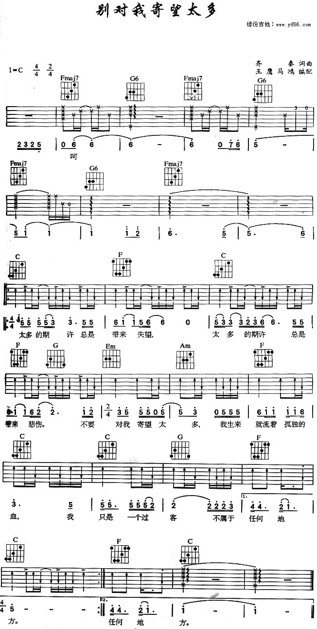 当前位置:琴谱网>吉他弹唱>别对我寄望太多