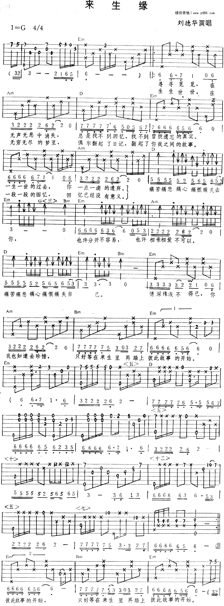 来生缘吉他谱 - 刘德华 - G调吉他弹唱谱