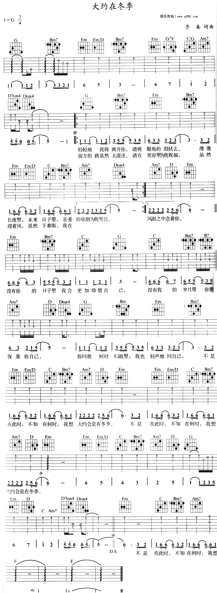 大约在冬季吉他谱 - 齐秦 - G调吉他弹唱谱