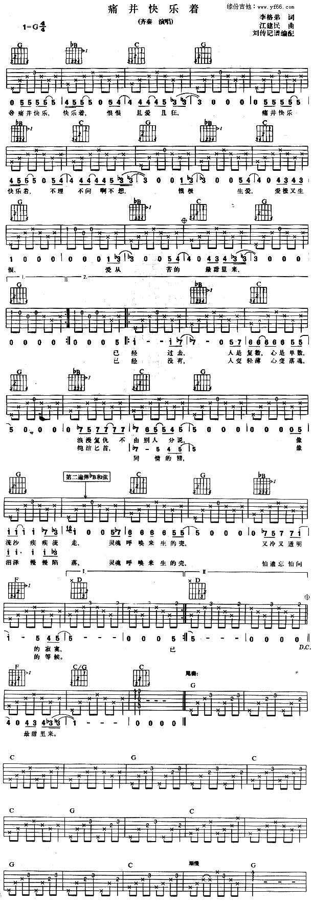 痛并快乐着吉他谱 - 齐秦 - G调吉他弹唱谱