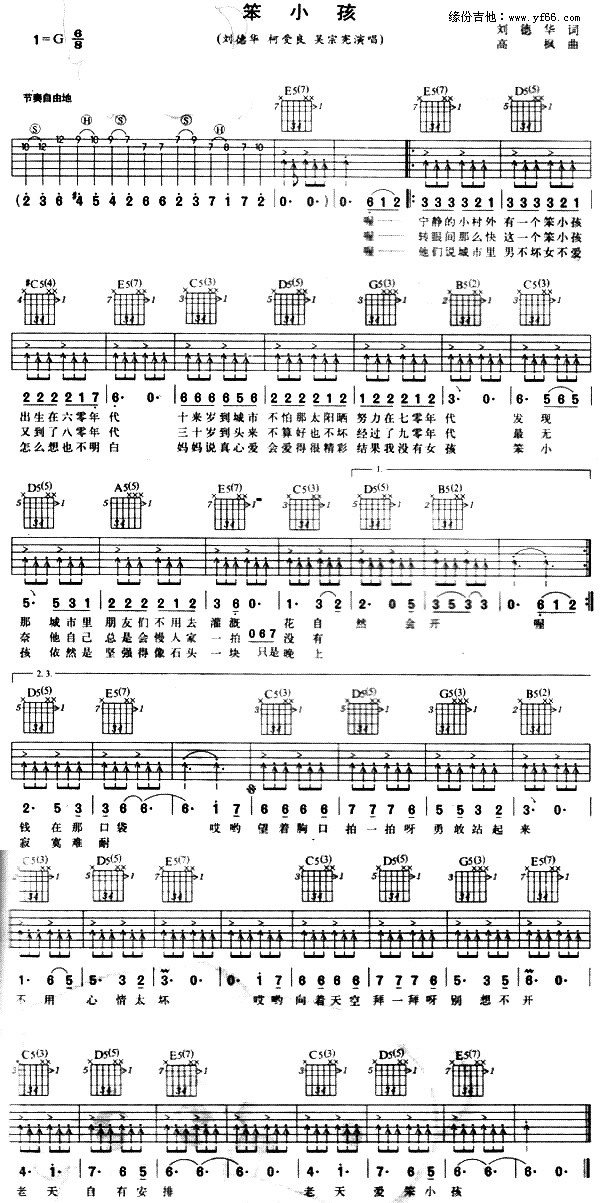 当前位置:琴谱网>吉他弹唱>笨小孩