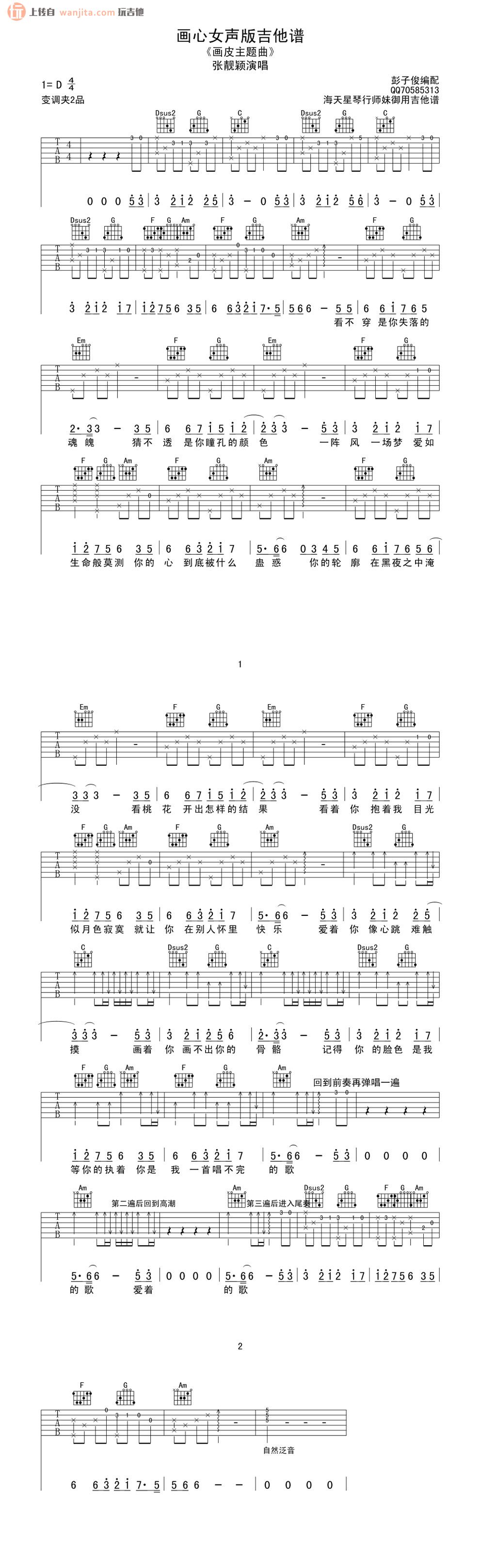 画心吉他谱 - 张靓颖 - D调吉他弹唱谱