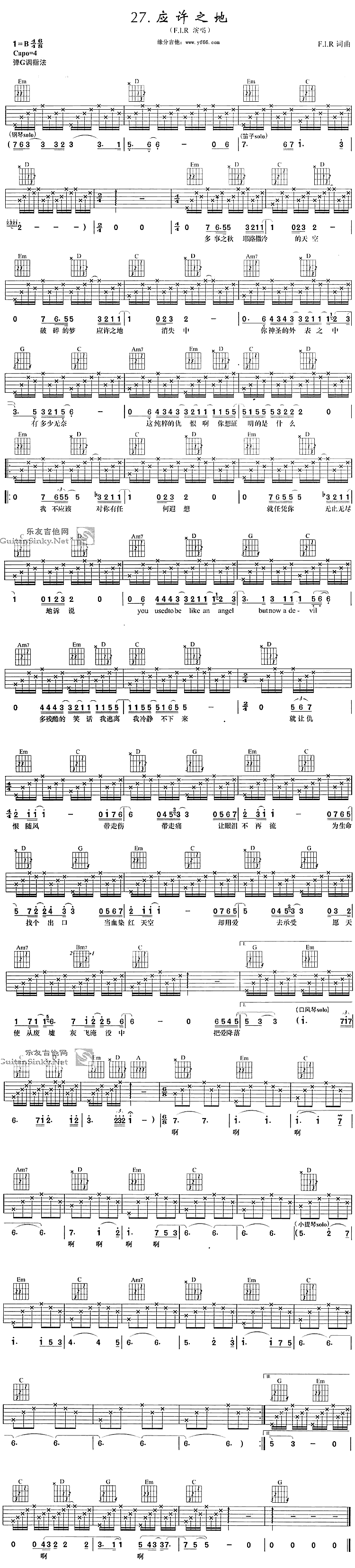 应许之地吉他谱 - 飞儿乐团(F.I.R) - 吉他弹唱谱