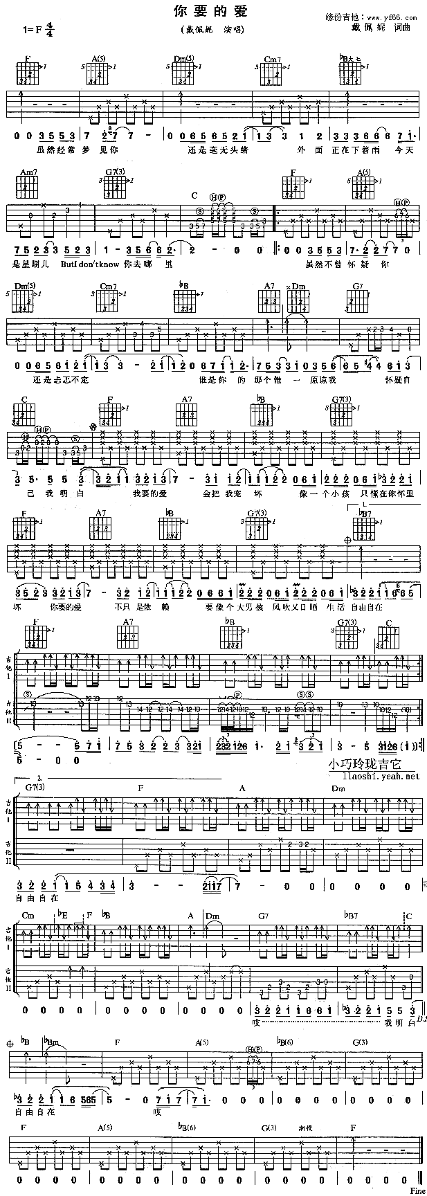 你要的爱吉他谱 - 戴佩妮 - F调吉他弹唱谱