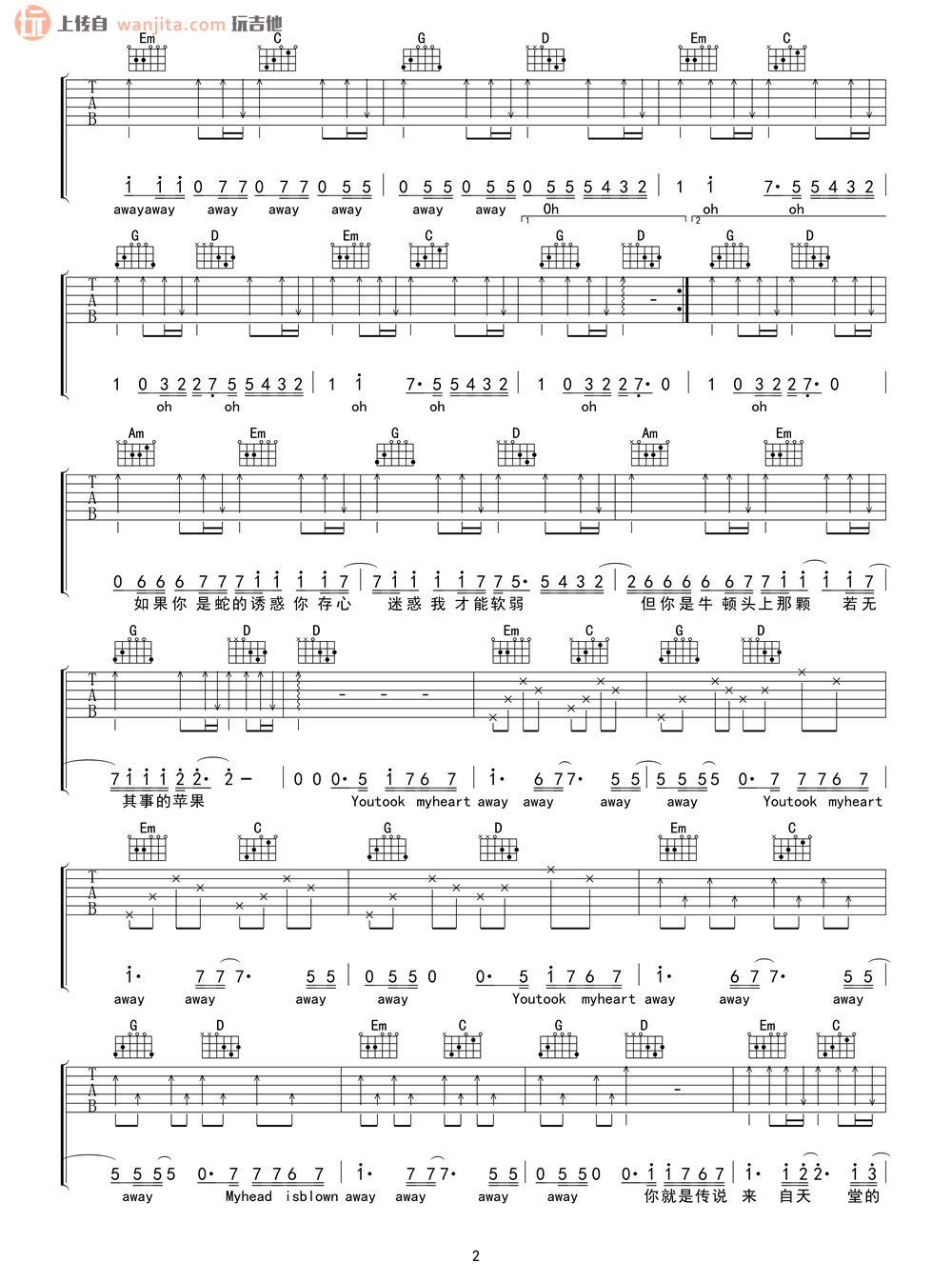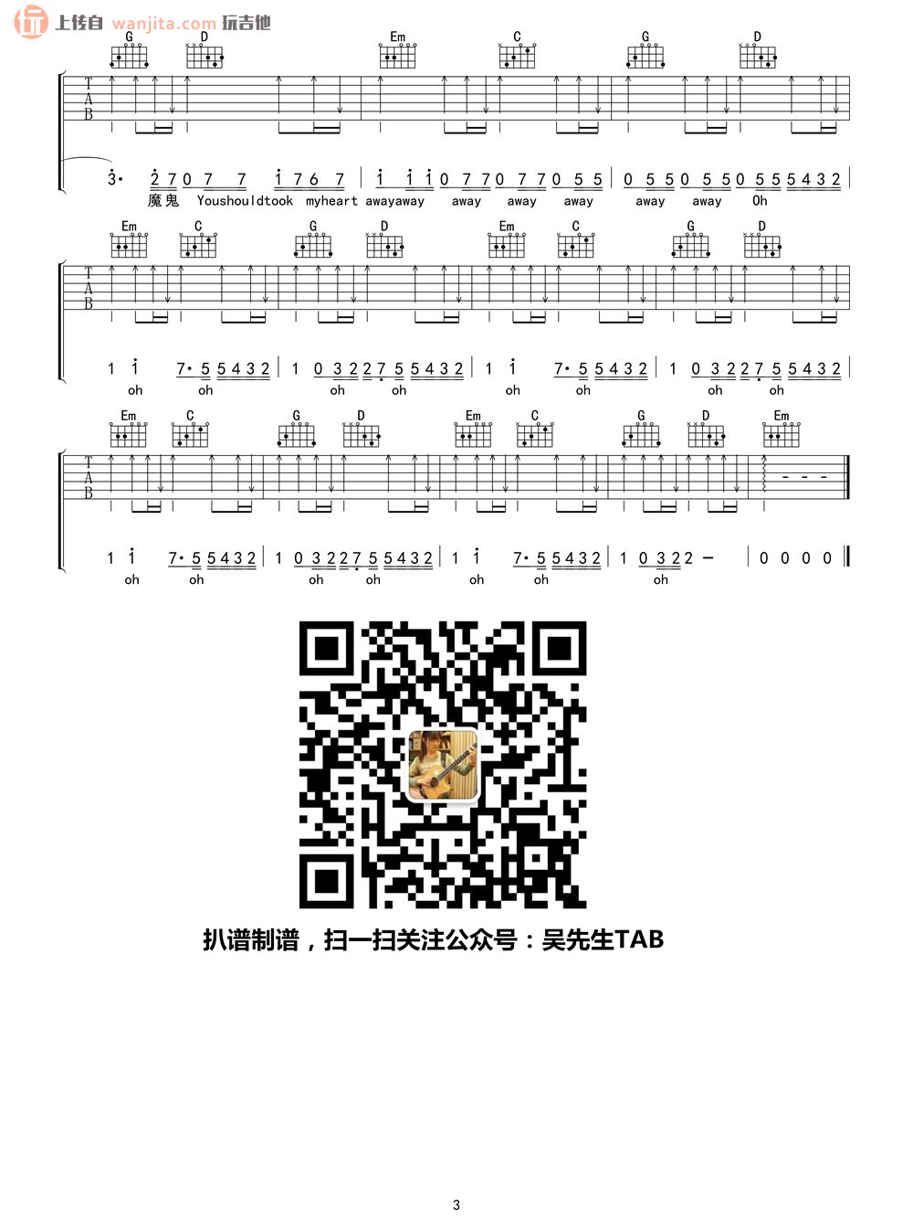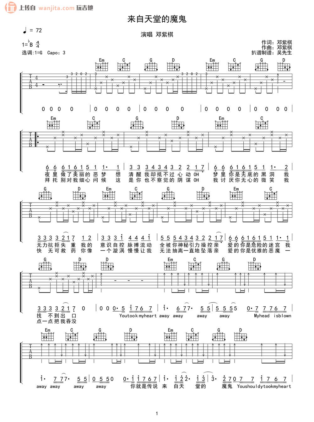 曲谱介绍: 邓紫棋《来自魔鬼的天堂》吉他弹唱谱,共有3张高清图谱。