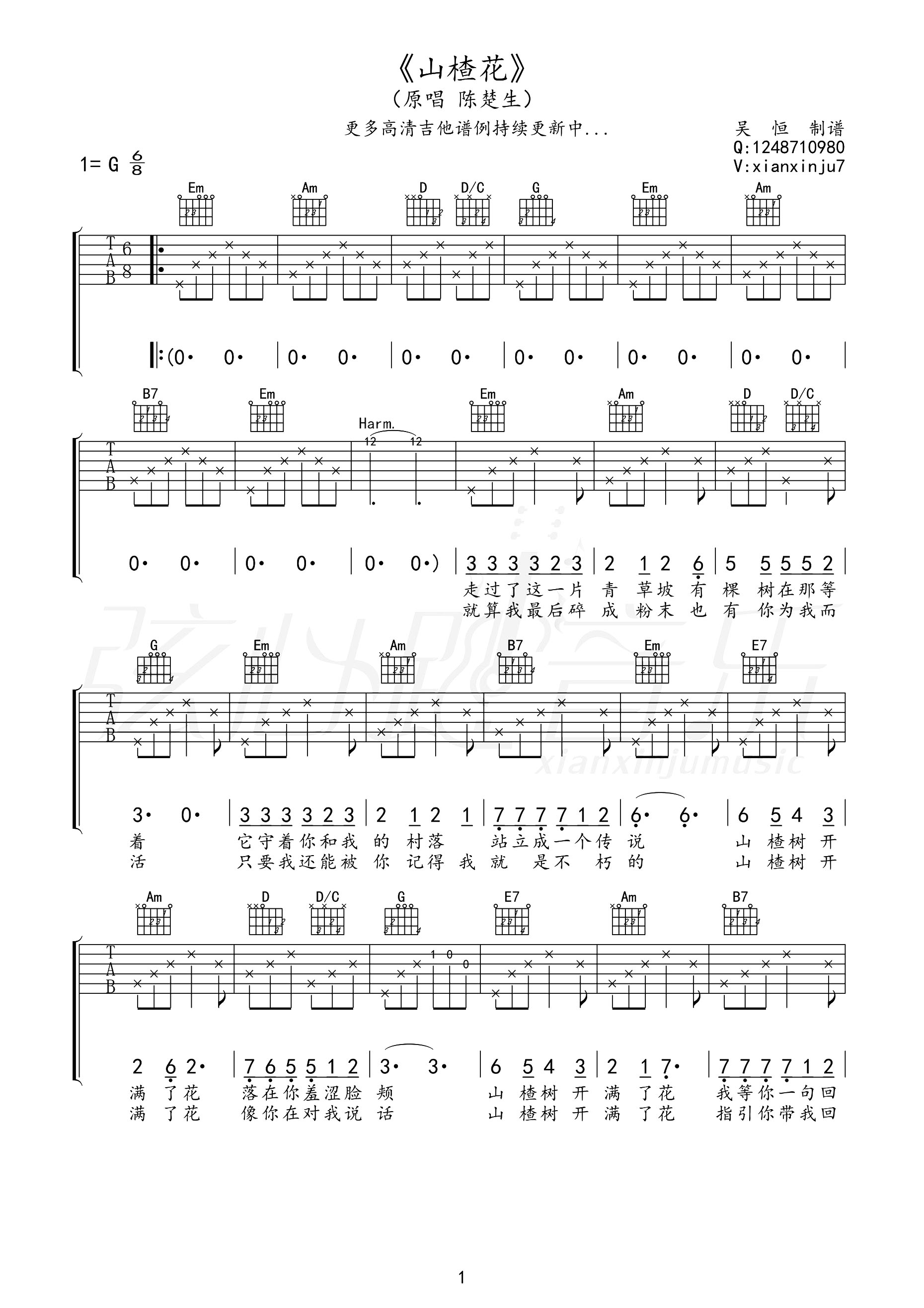 山楂花吉他谱 - 陈楚生 - G调吉他弹唱谱