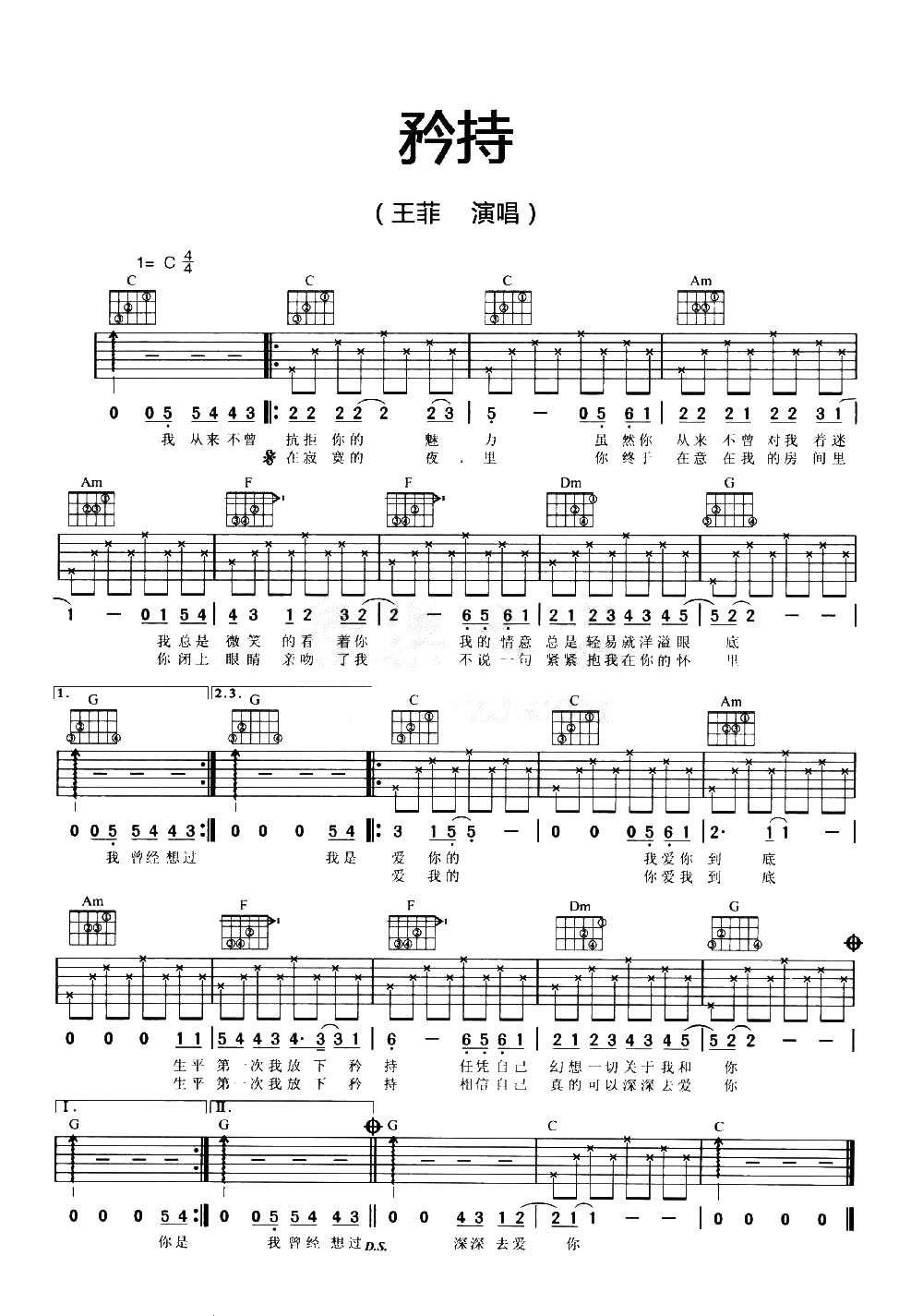 矜持吉他谱 - 王菲 - C调吉他弹唱谱