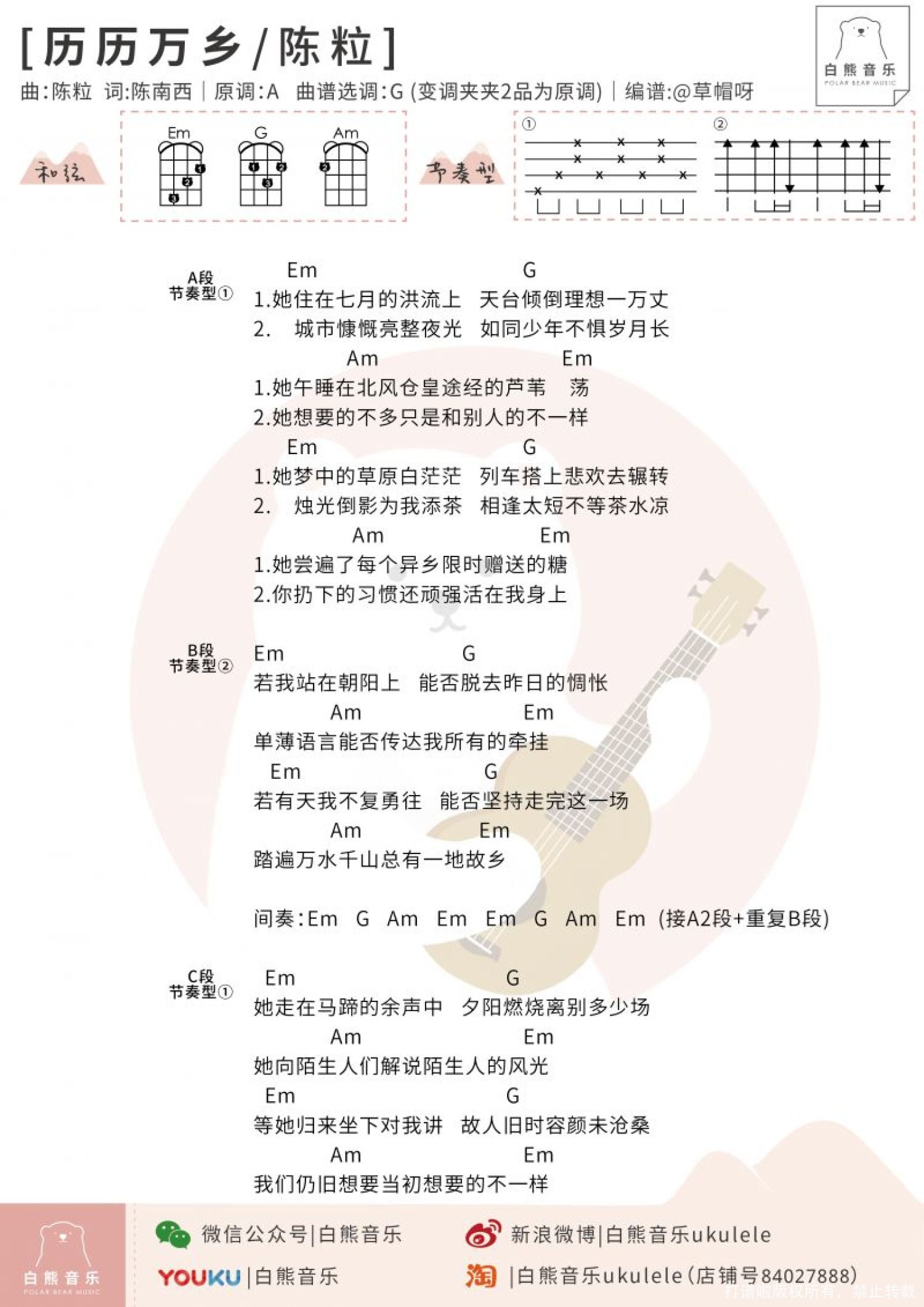 曲谱介绍: 《历历万乡》尤克里里弹唱谱