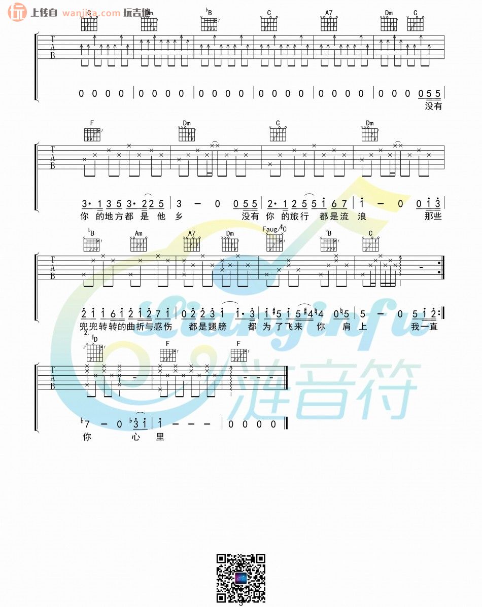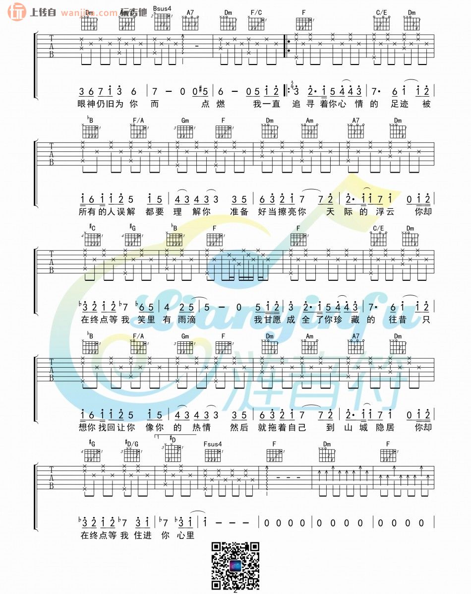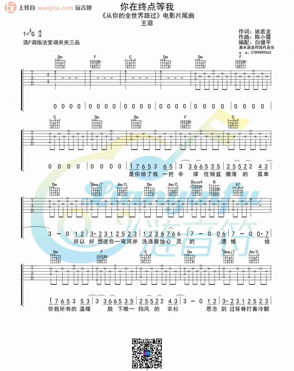 曲谱介绍: 王菲《你在终点等我》吉他弹唱谱,共有3张高清图谱。