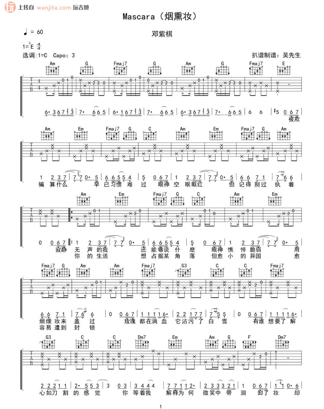 Mascara吉他谱 - 邓紫棋 - 吉他弹唱谱