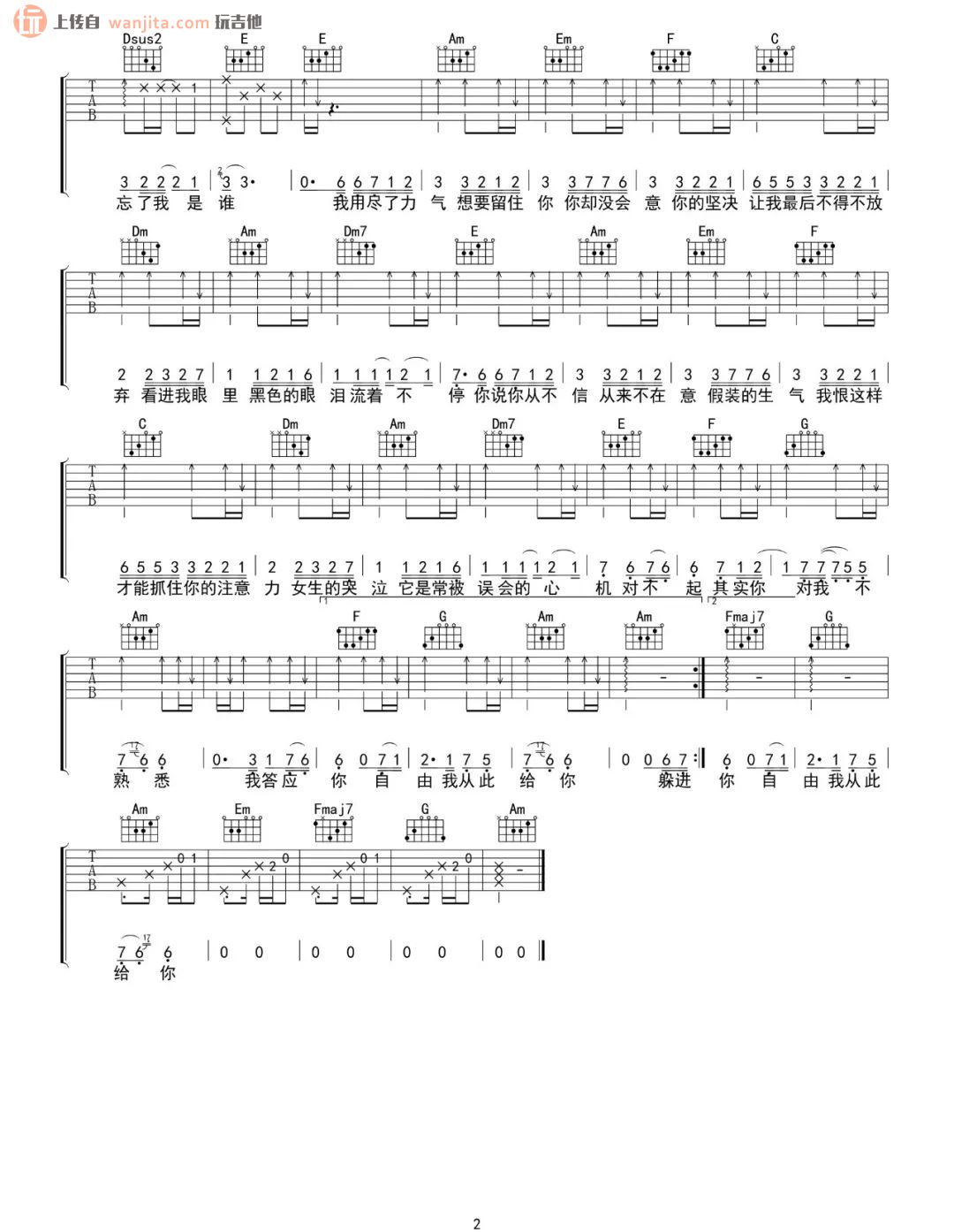 曲谱介绍: 此版本的曲谱来源于吴先生扒谱制谱,歌曲原调为降E调,这里采用C调指法根据原版进行编配,演唱时夹变调夹3品回到原调。由于歌曲音域过广,所以在原曲的基础上略微改动,但原曲的味道还是在的。
