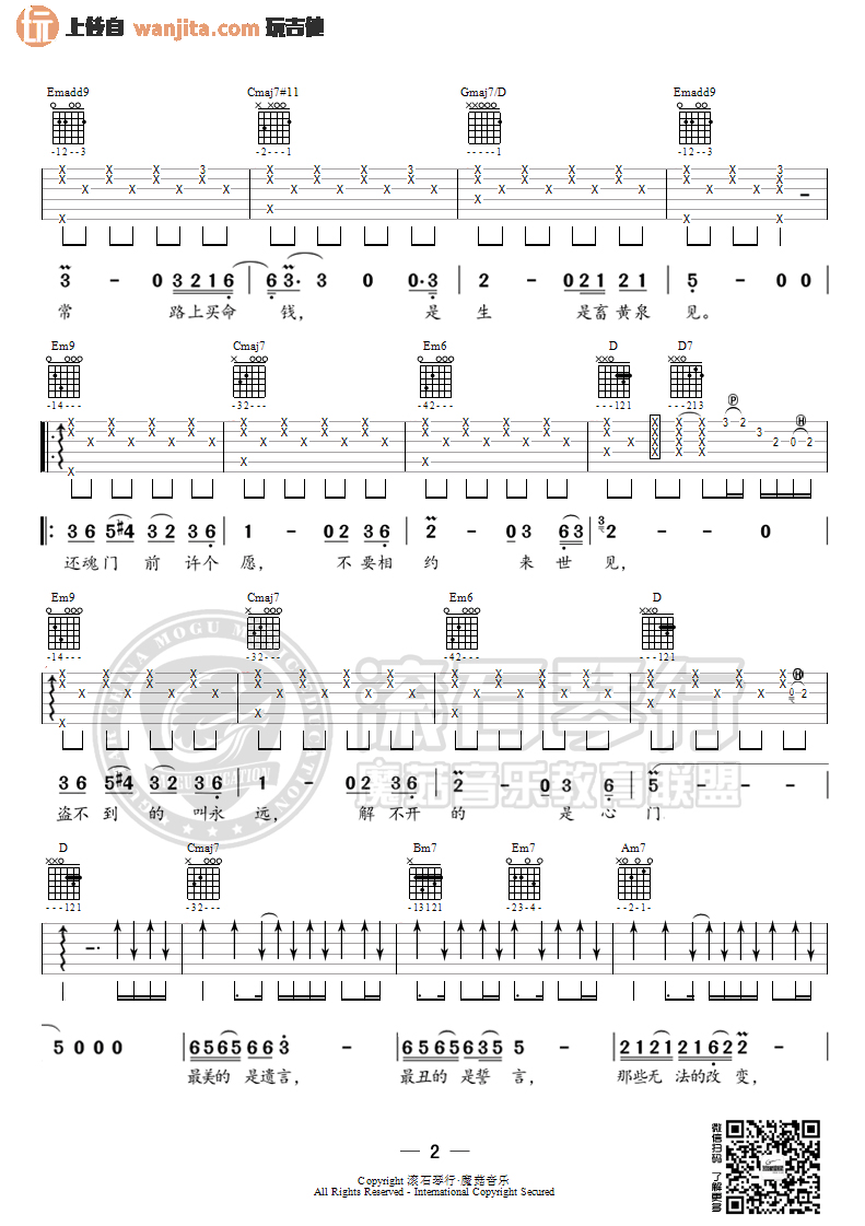 曲谱介绍: 《还魂门》吉他谱,总共4张高清图片谱,原调为G调,选用G调,节拍4/4,不使用变调夹,弹唱难度初级。