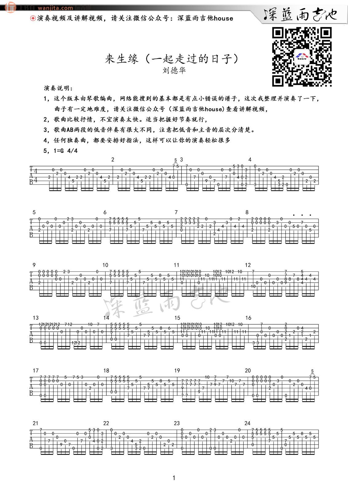 曲谱介绍: 刘德华《来生缘》吉他独奏谱,共有2张高清图谱,免翻页排版设计。