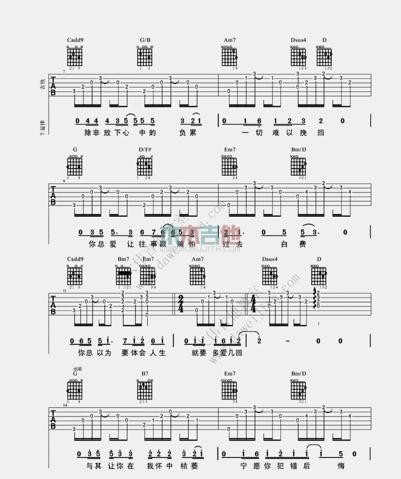 当前位置:琴谱网>吉他弹唱>遗憾