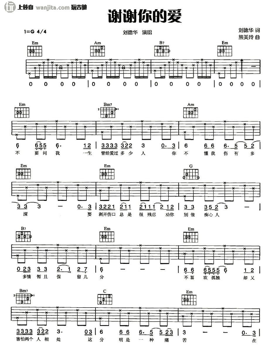 谢谢你的爱吉他谱 - 刘德华 - G调吉他弹唱谱 - 原版