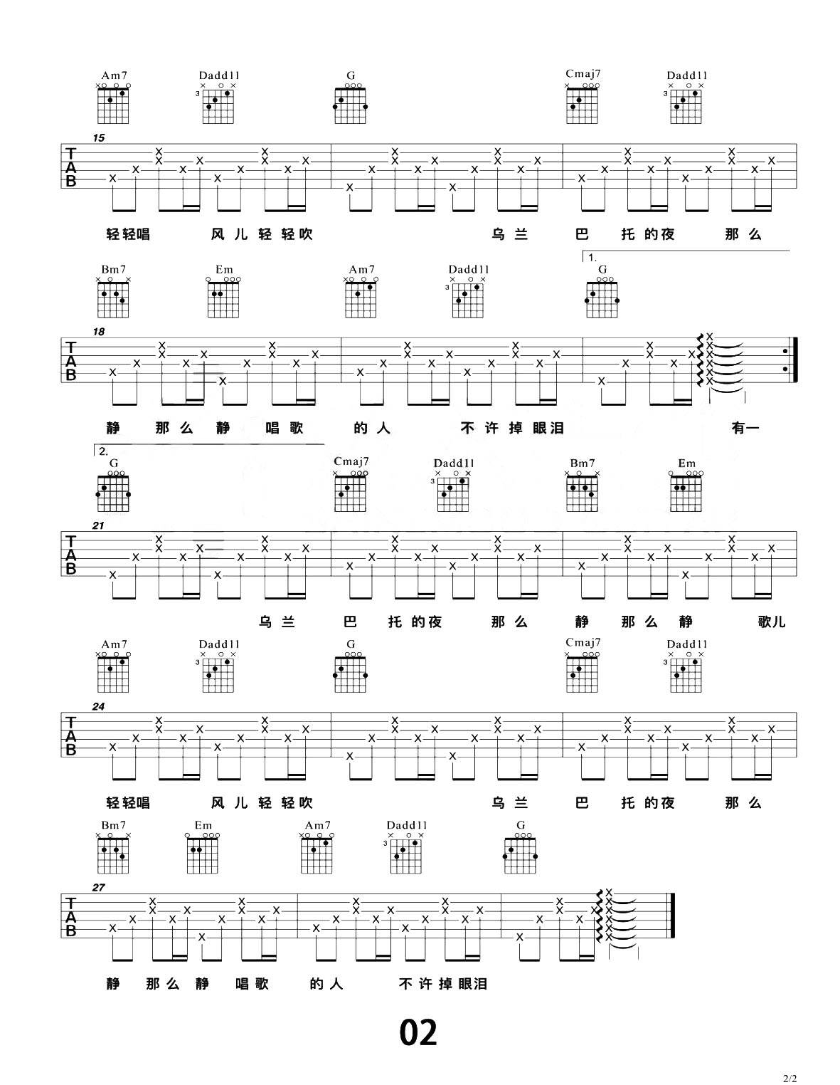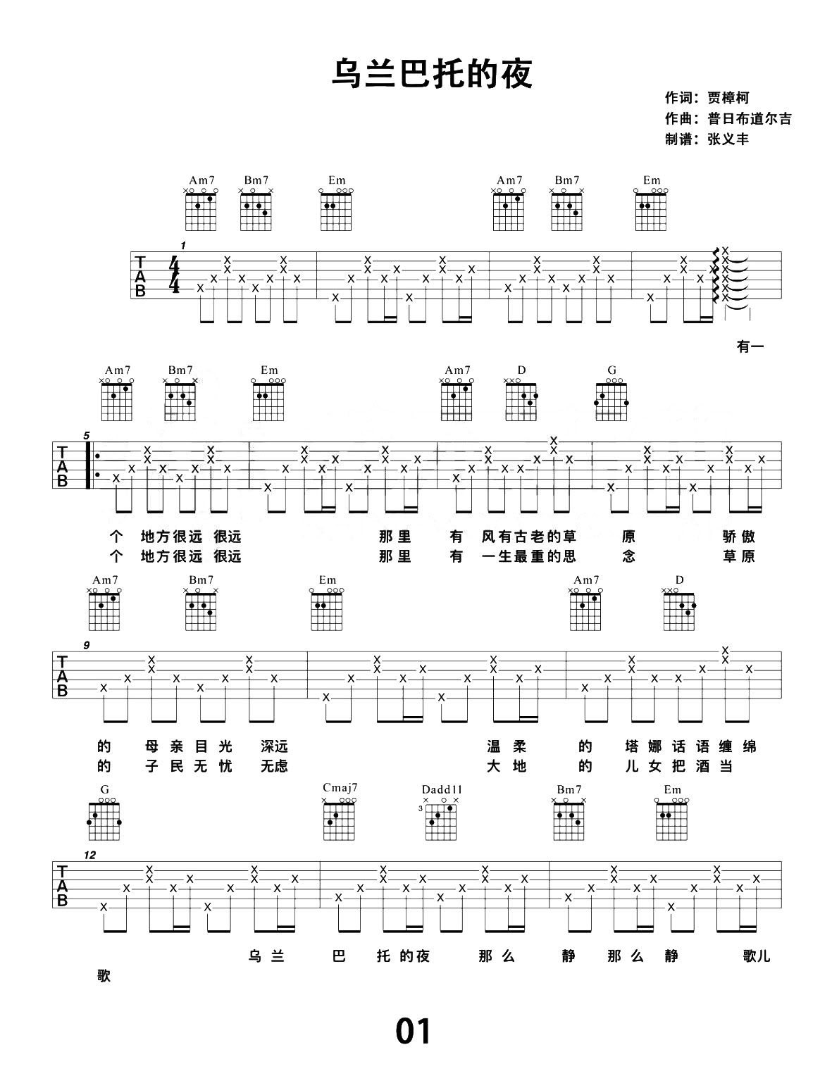 曲谱介绍: 《乌兰巴托的夜》吉他弹唱演示视频