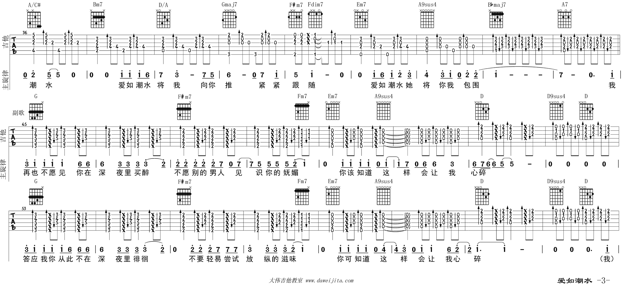 曲谱介绍: 张信哲《爱如潮水》吉他弹唱谱,共有5张高清图谱。