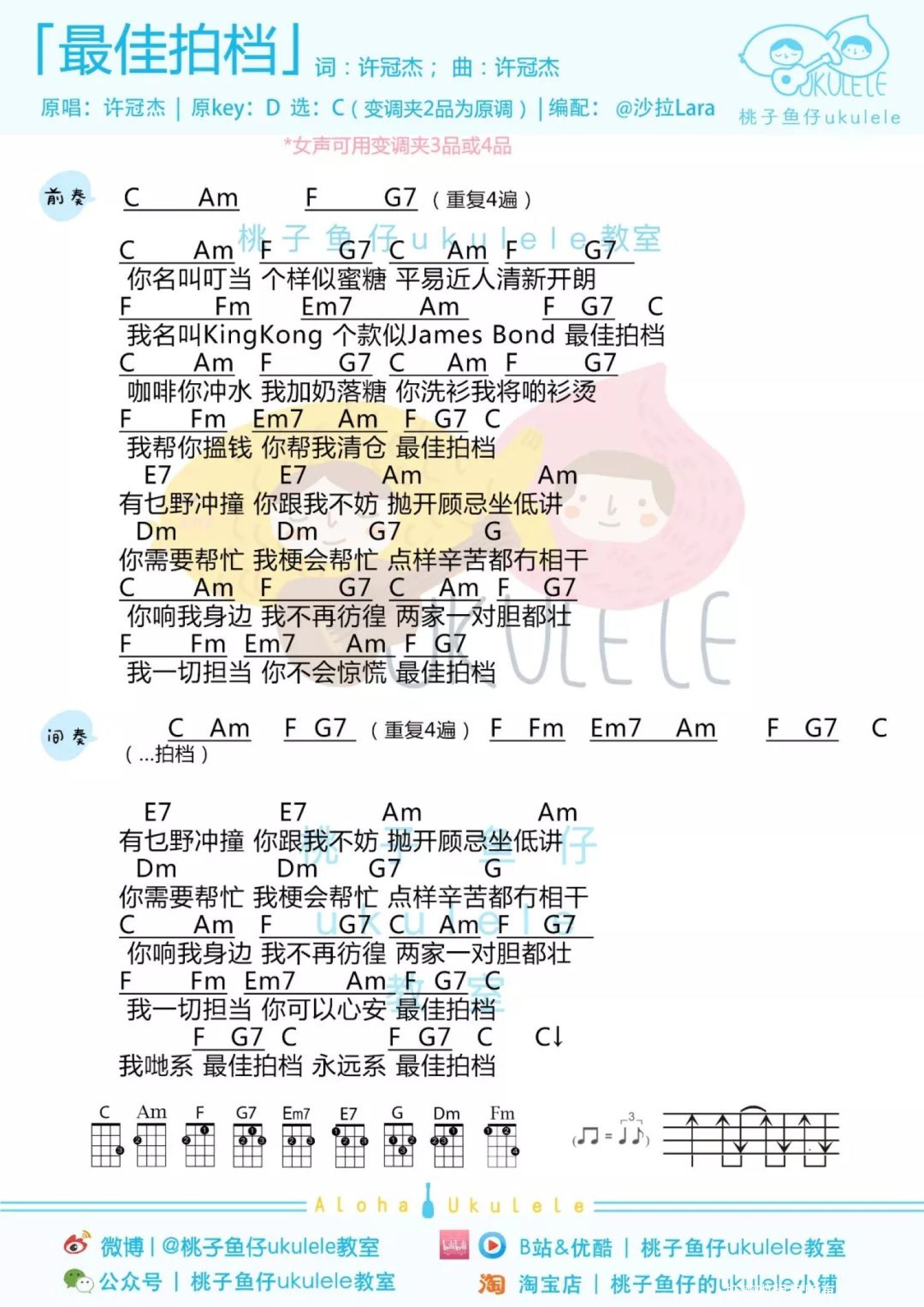 曲谱介绍: 《最佳拍档》尤克里里弹唱谱