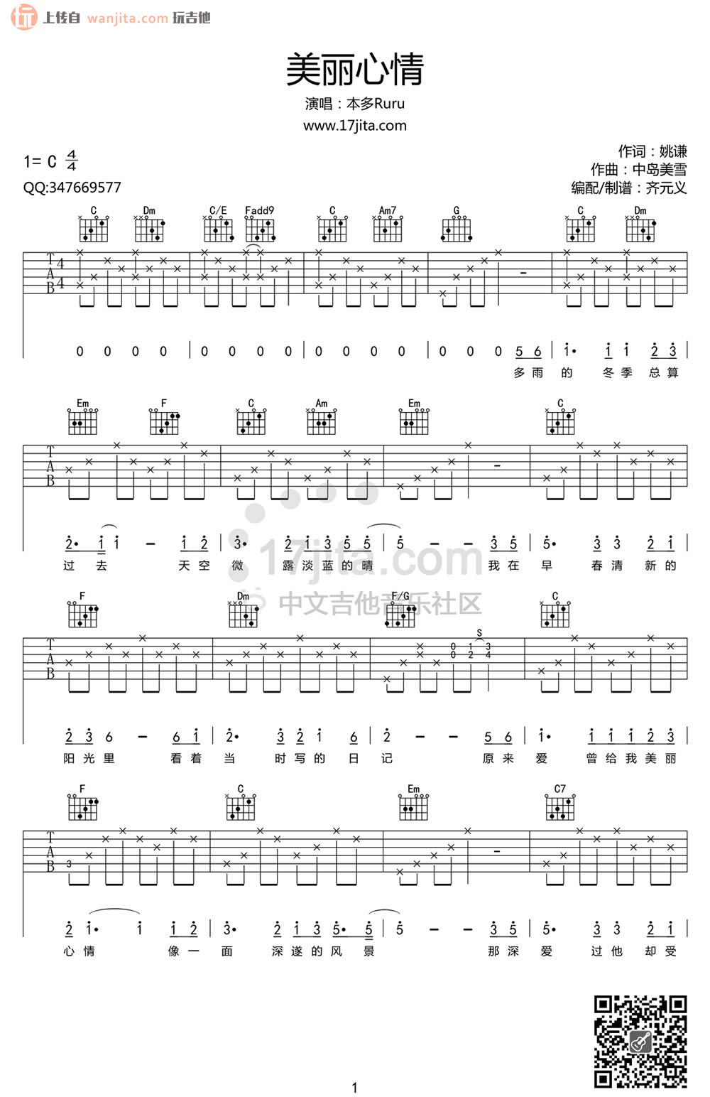 当前位置:琴谱网>吉他弹唱>美丽心情