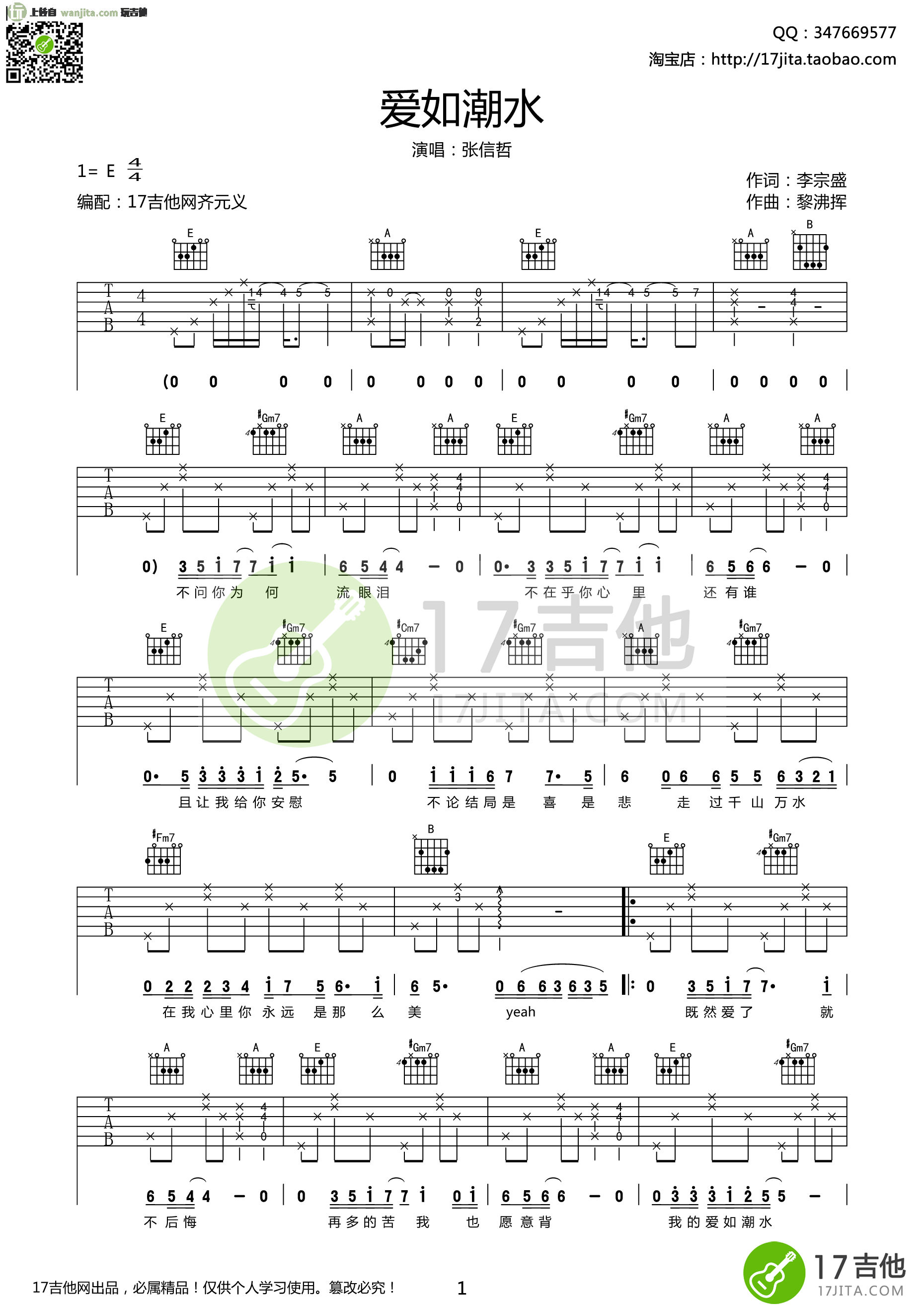 当前位置:琴谱网>吉他弹唱>爱如潮水