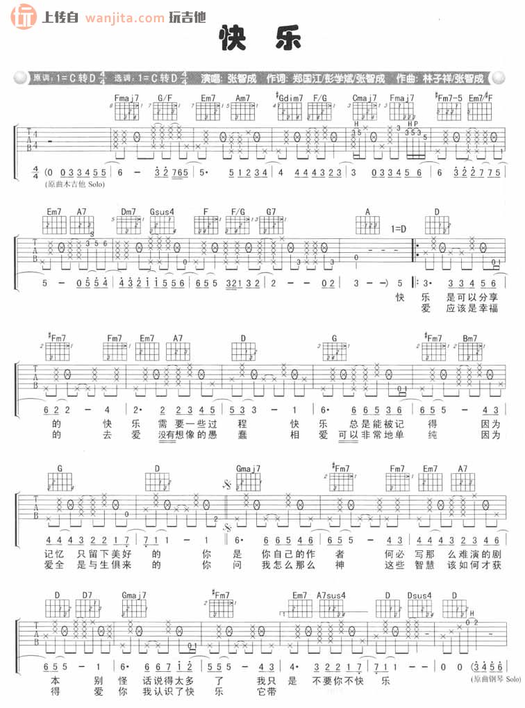 快乐吉他谱 - 张智成 - 吉他弹唱谱 - 原版