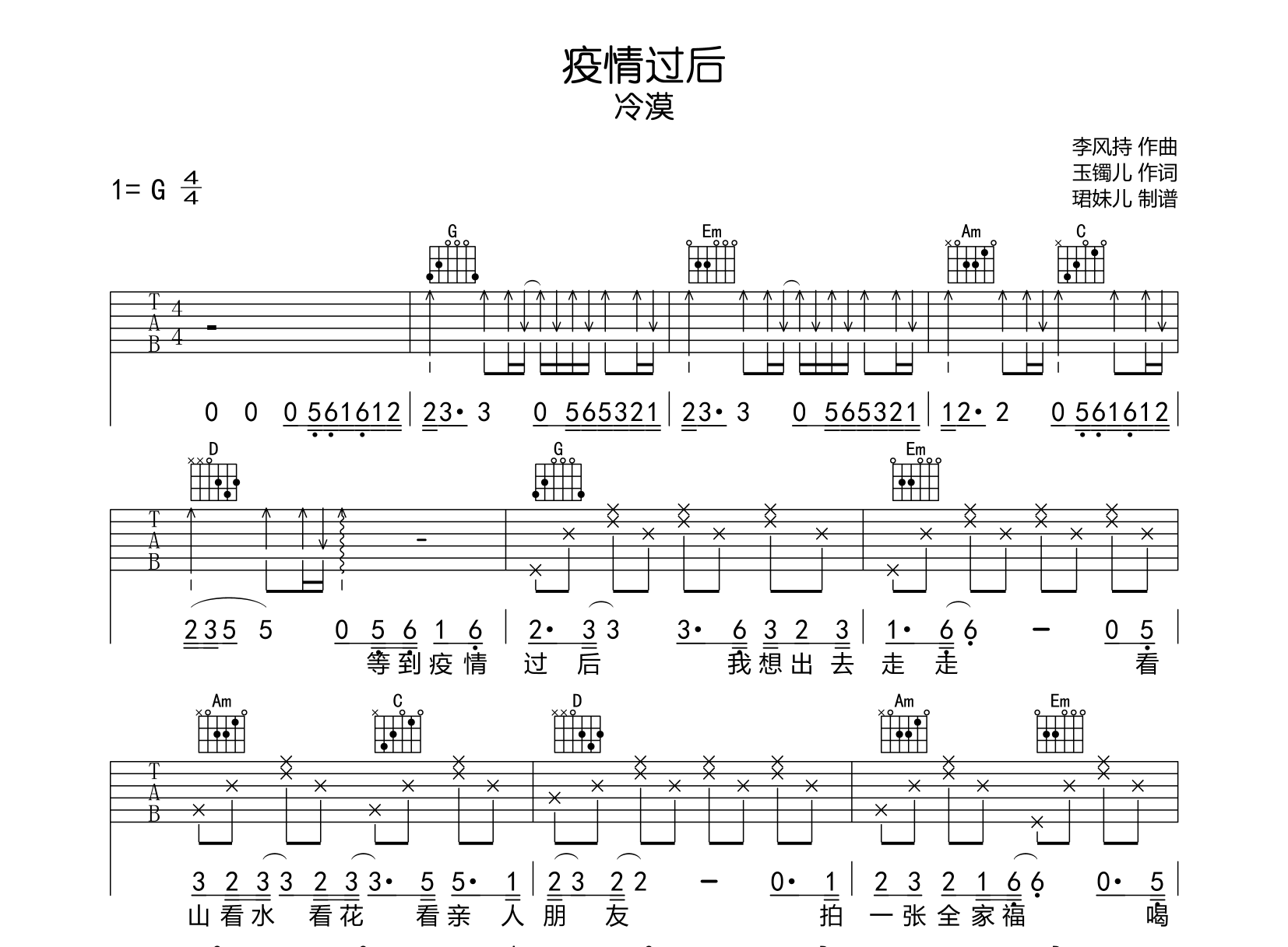 疫情过后吉他谱 - 冷漠 - G调吉他弹唱谱