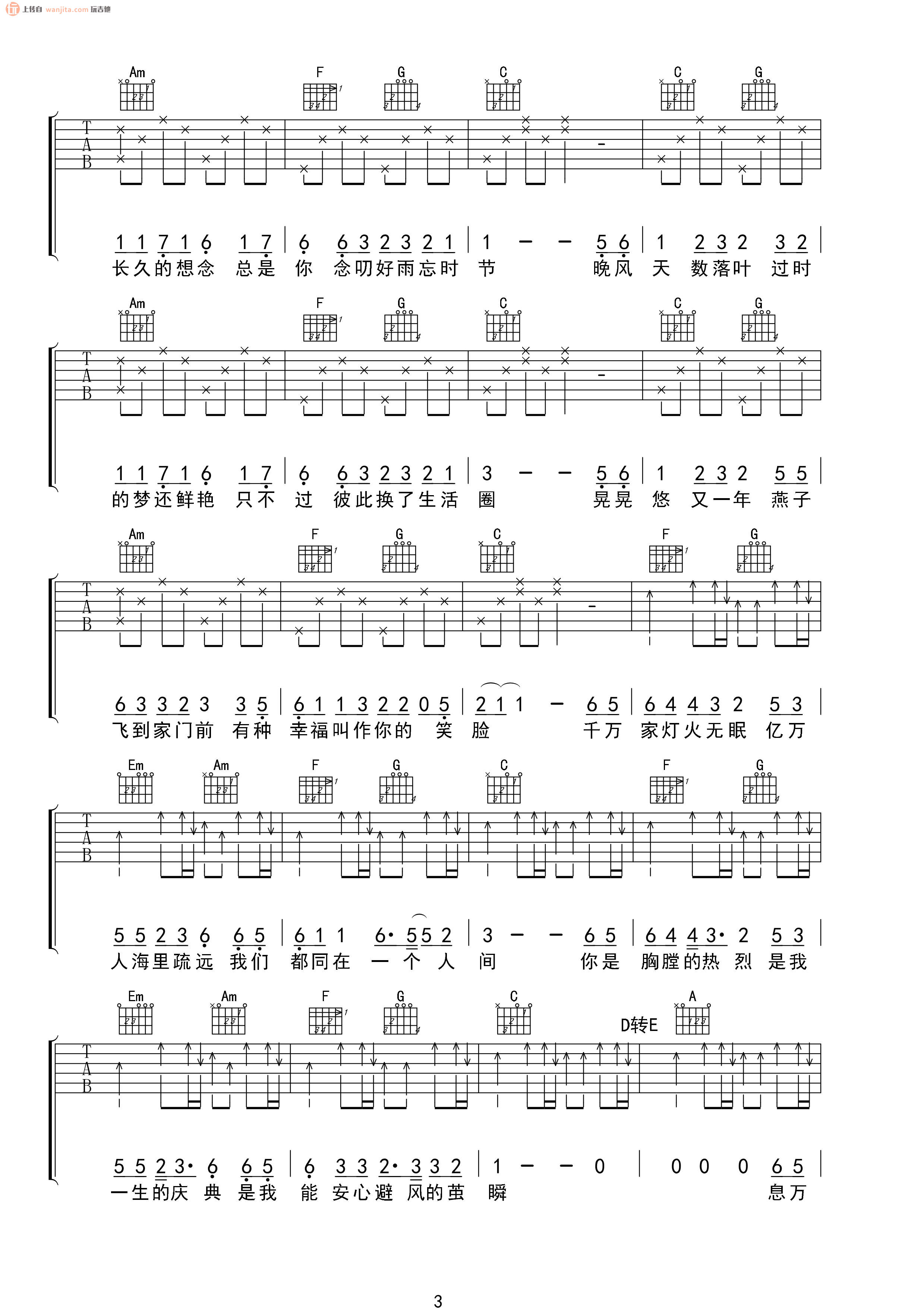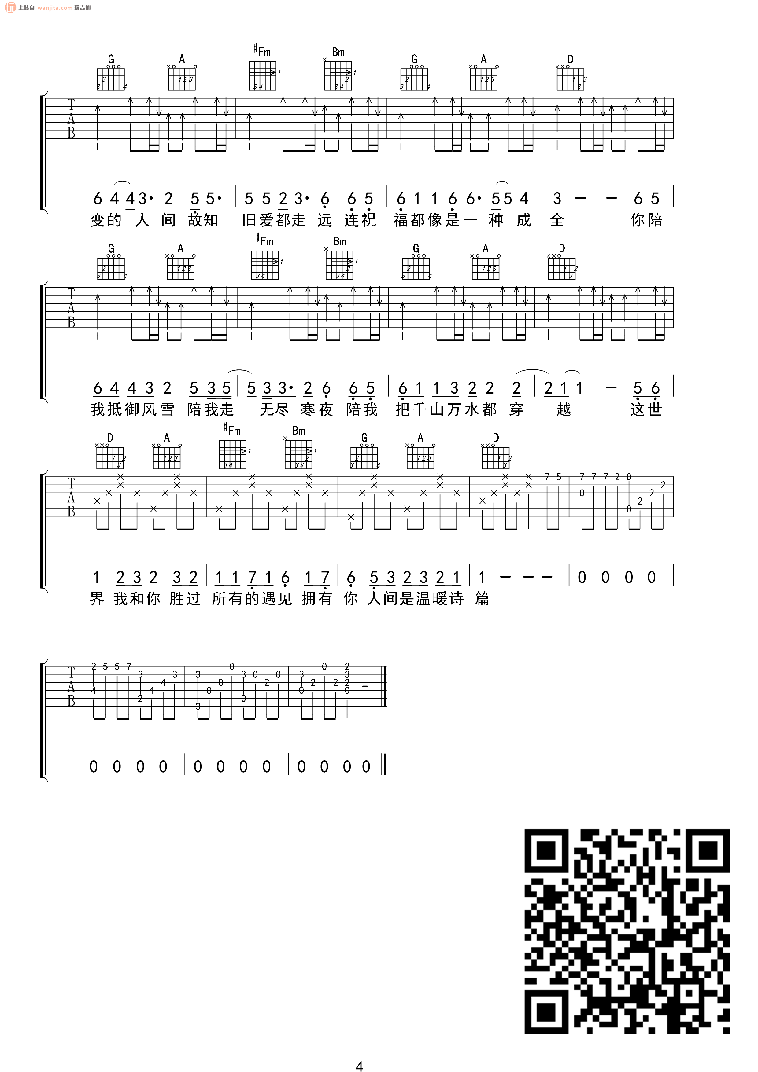 曲谱介绍: 倪华《人间》吉他弹唱谱,共有4张高清图谱。