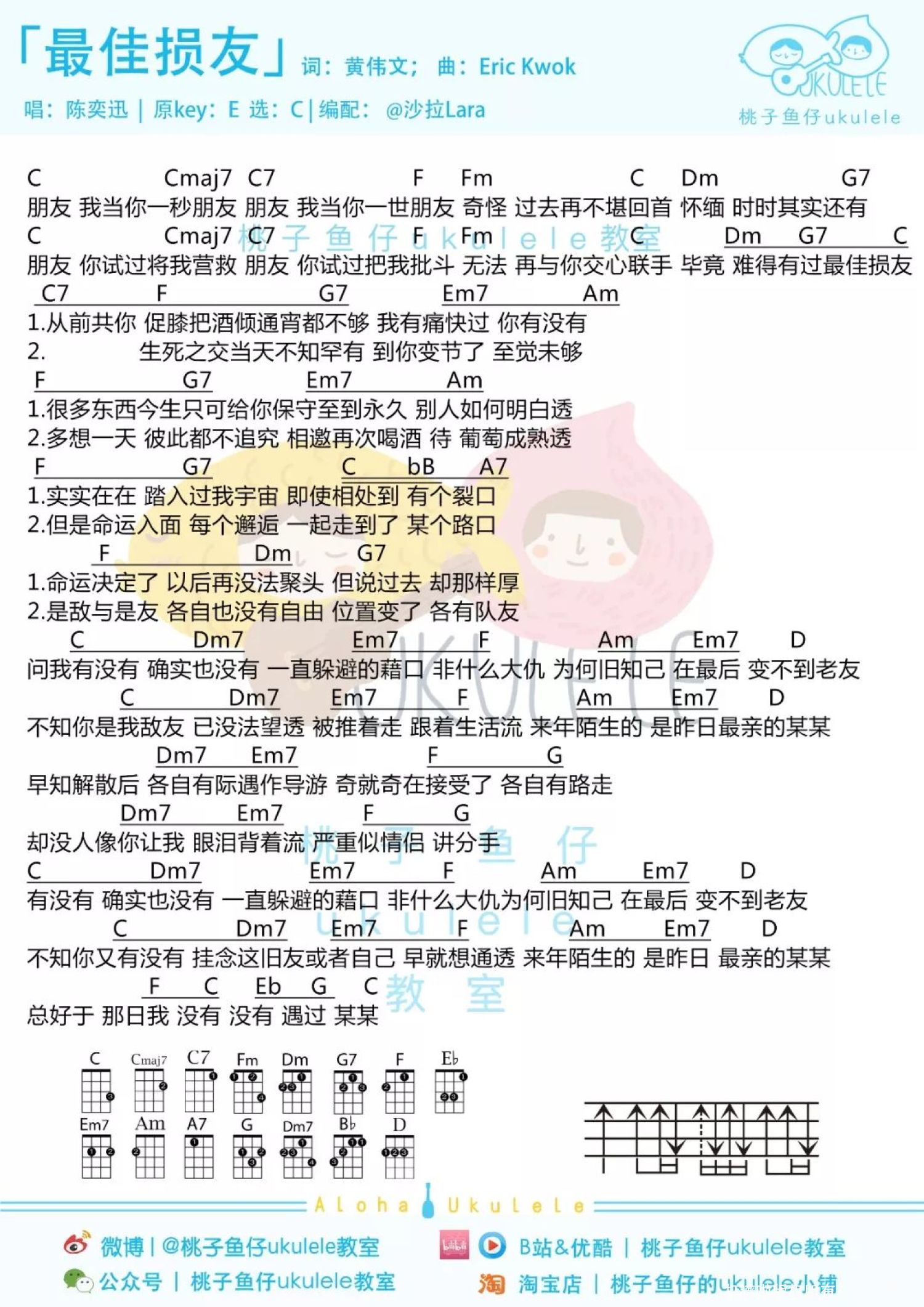 曲谱介绍: 《最佳损友》尤克里里弹唱谱