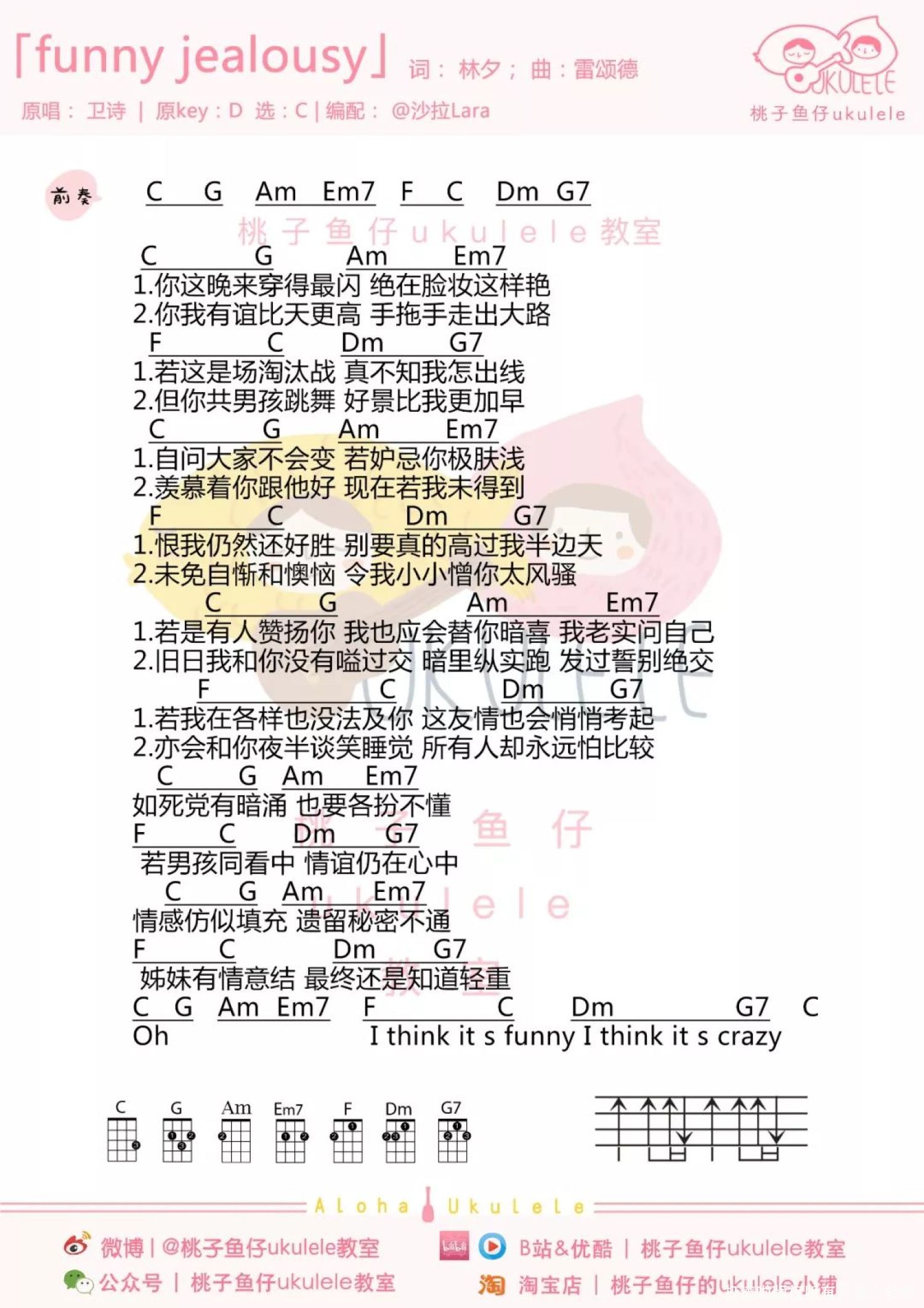 曲谱介绍: 《Funny Jealousy》尤克里里弹唱谱