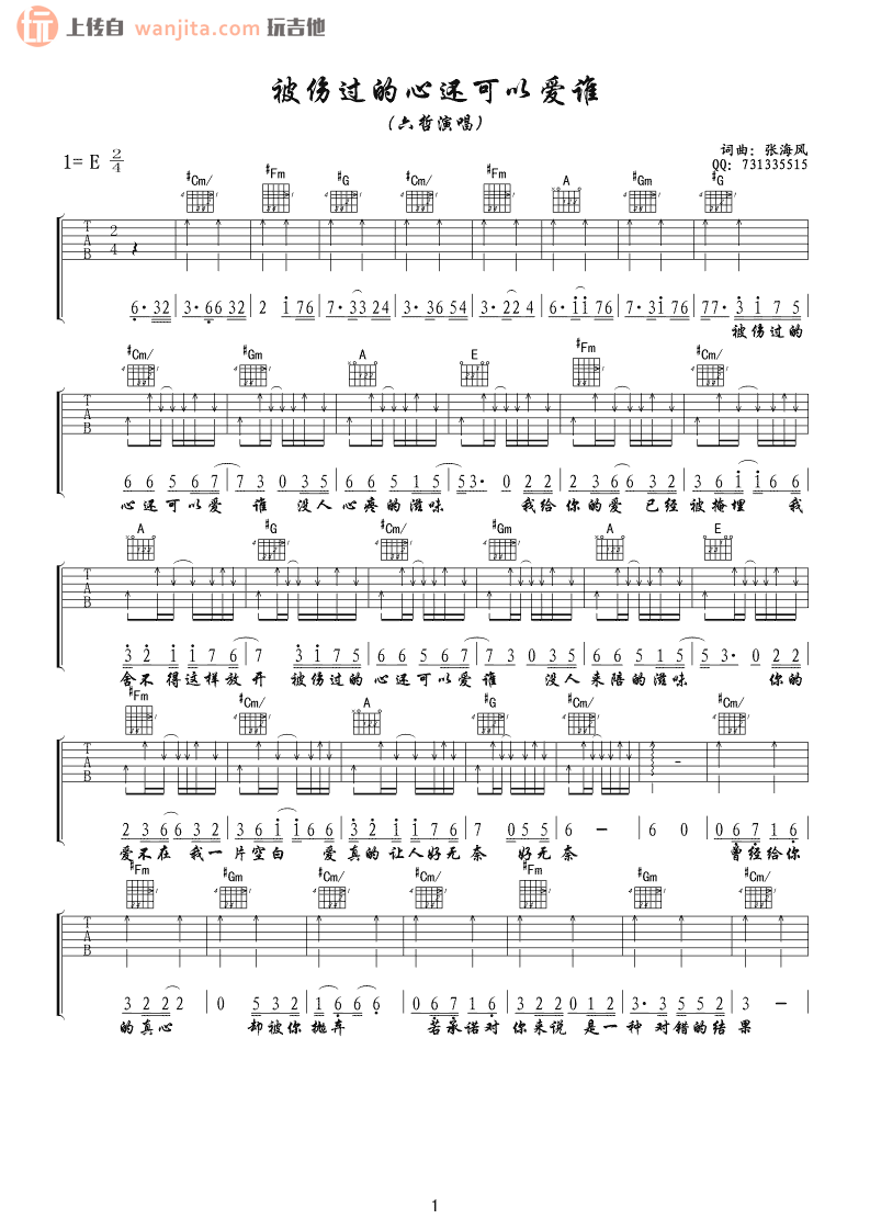 曲谱介绍: 《被伤过的心还可以爱谁》吉他谱,总共2张高清图片谱,原调为E调,节拍2/4拍,不使用变调夹,弹唱难度初级。