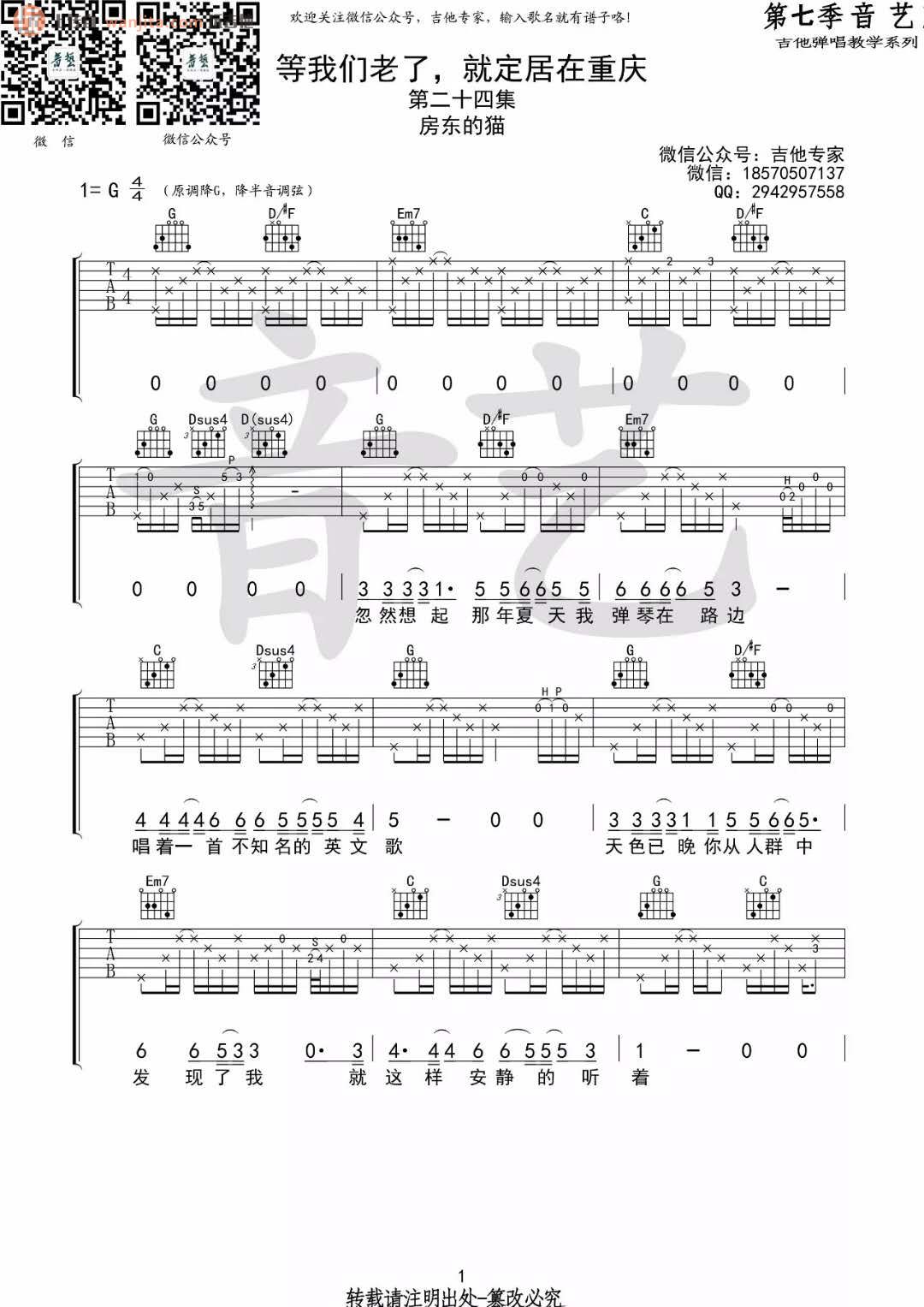 等我们老了就定居在重庆吉他谱 - 房东的猫 - C调吉他弹唱谱 - 原版