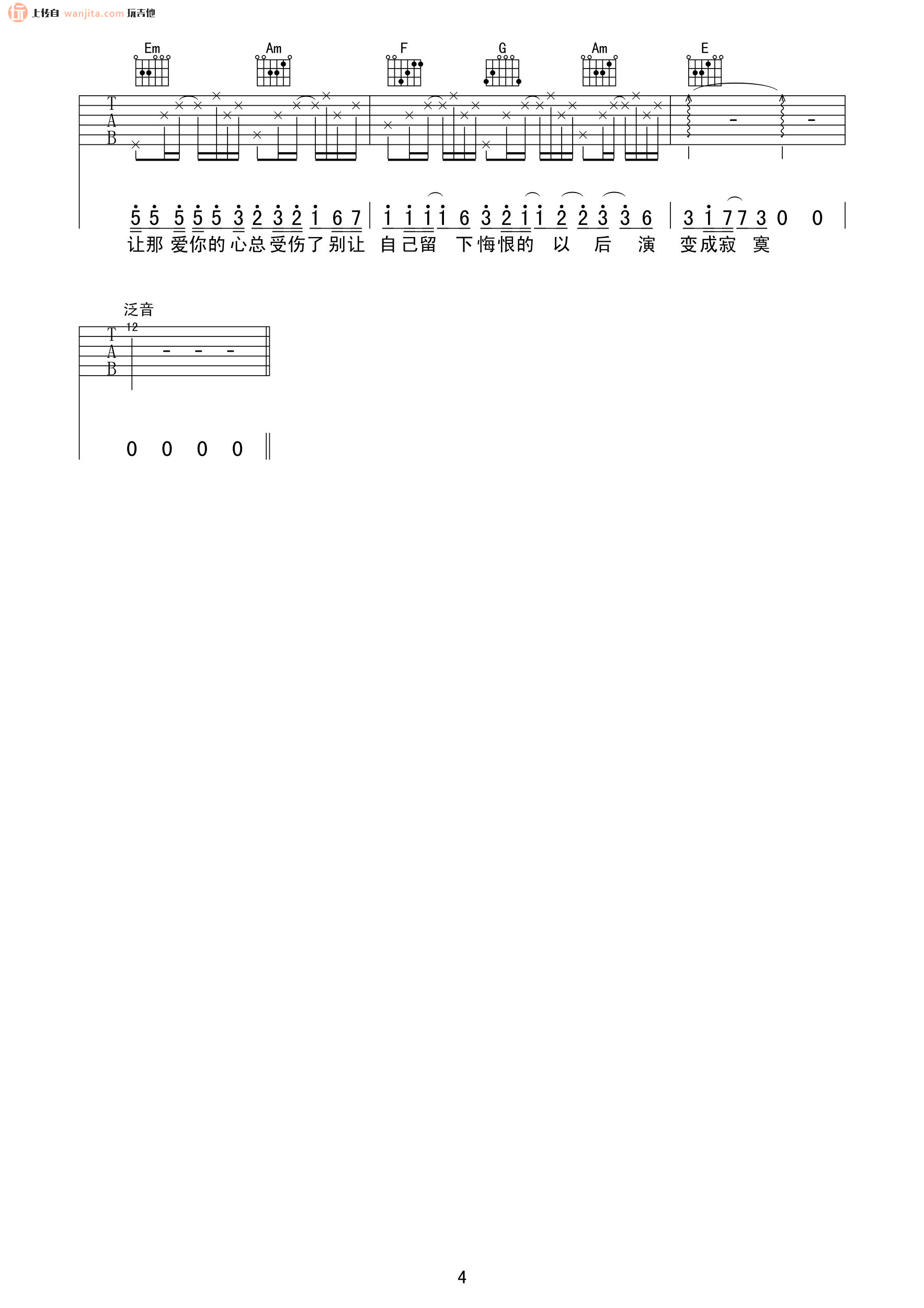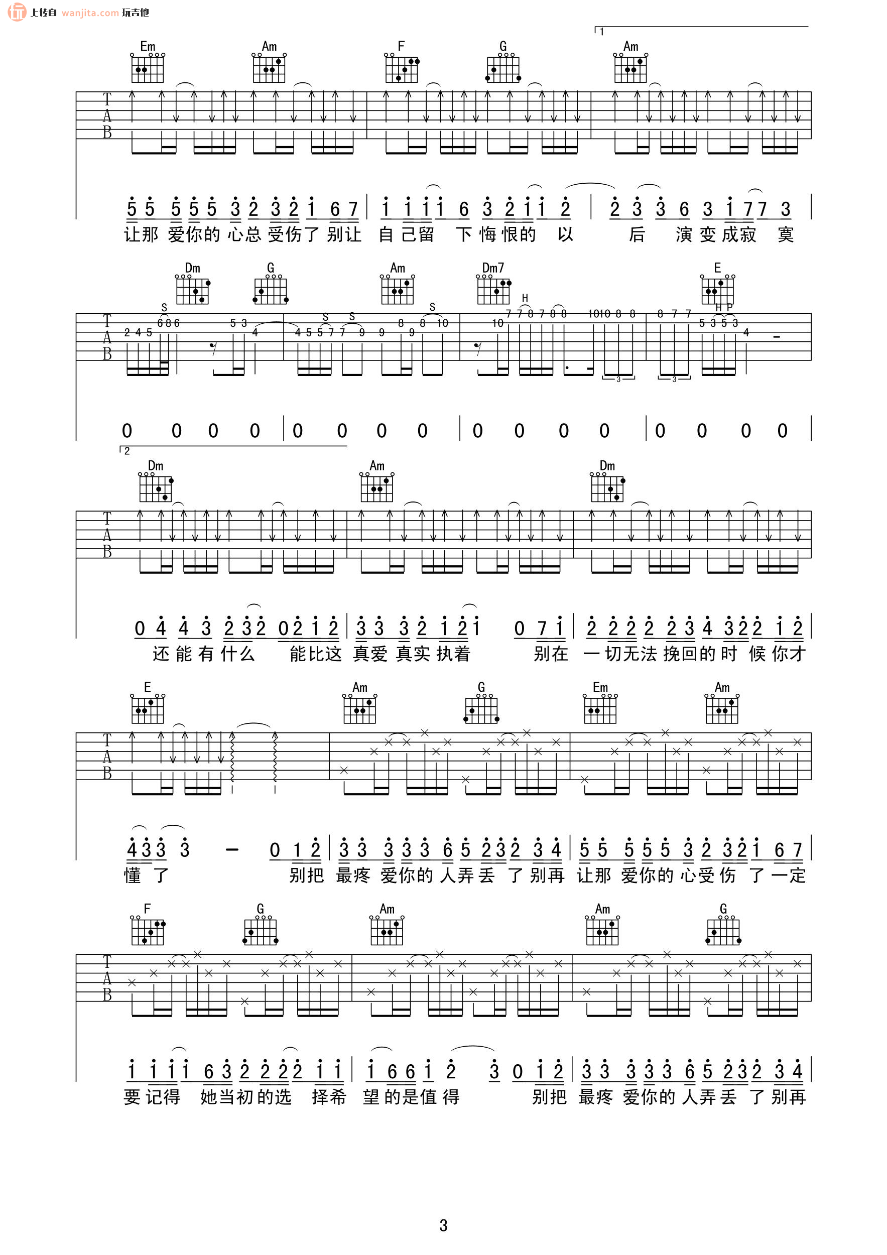 曲谱介绍: 《别把疼你的人弄丢了》吉他谱,总共4张高清图片谱,原调为C调,节拍4/4拍,不使用变调夹,弹唱难度初级。