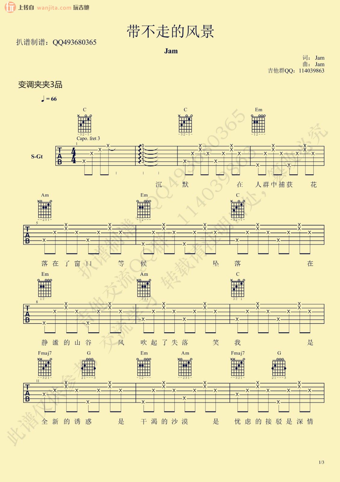 带不走的风景吉他谱 - Jam(阿敬) - 吉他弹唱谱 - 原版