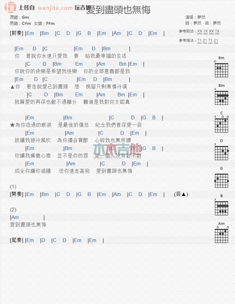 爱到尽头也无悔吉他谱 - 梦然 - 吉他弹唱谱